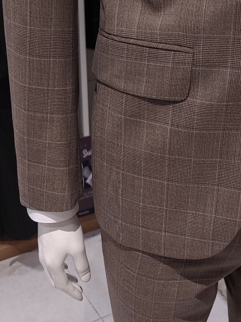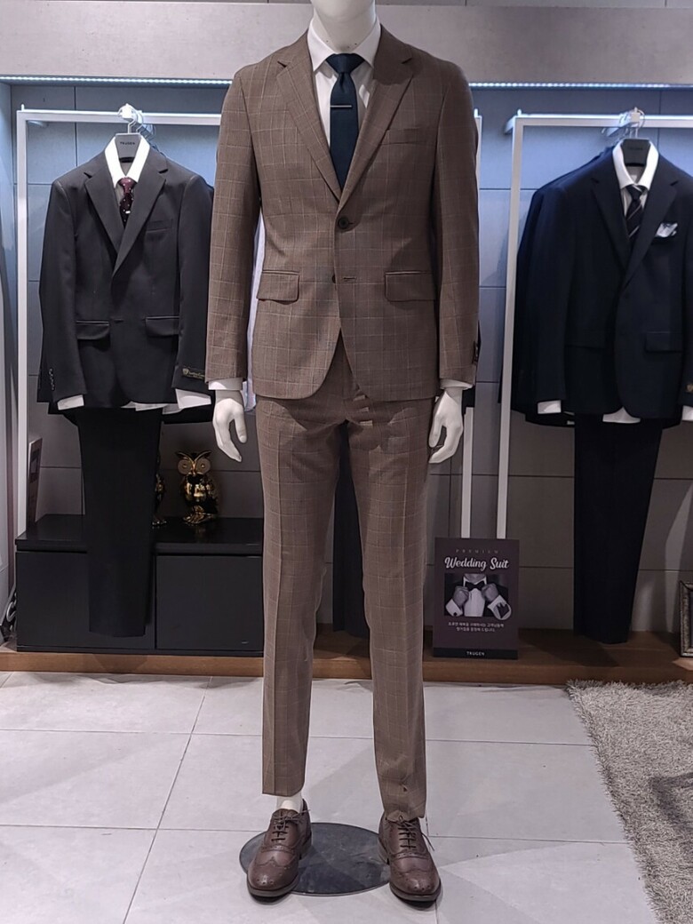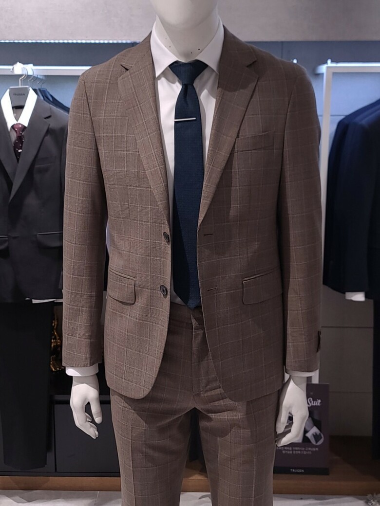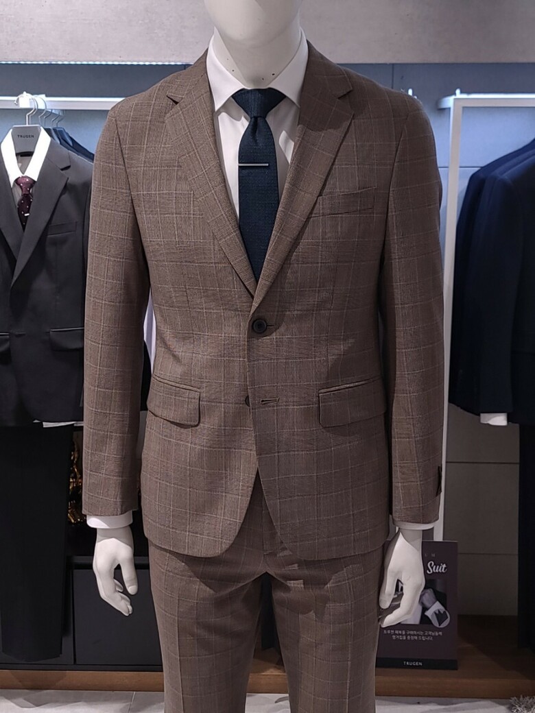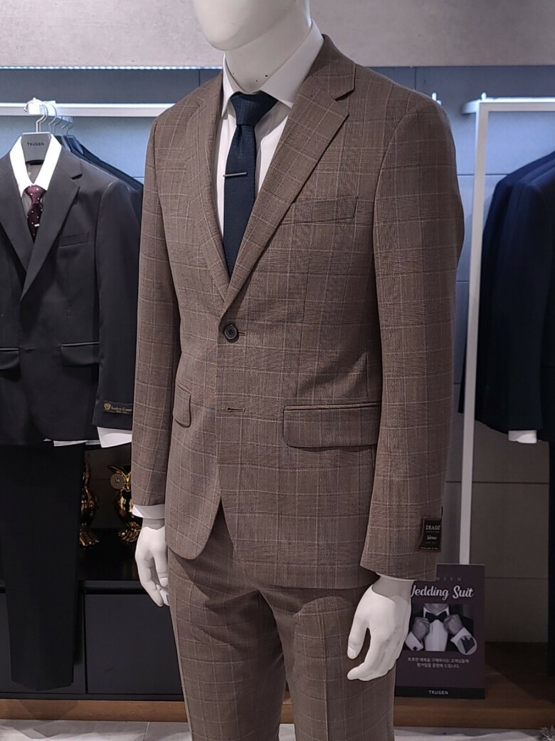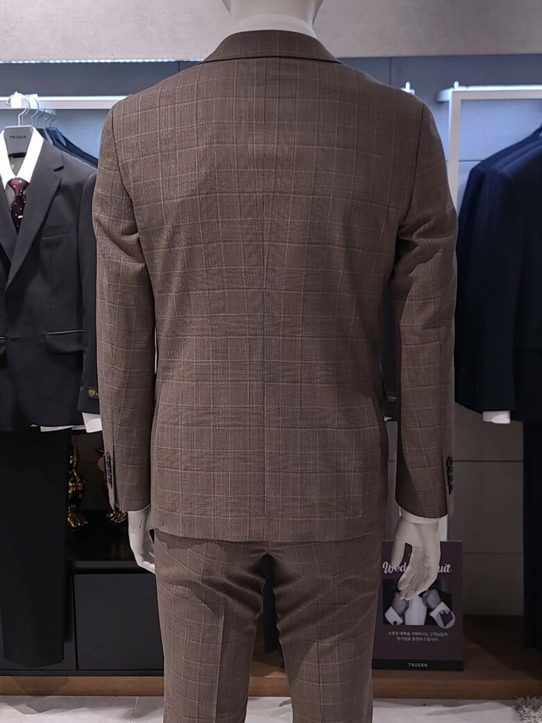 트루젠 이태리수입 순모 브라운체크 기본핏 프리미엄 남자 정장세트 2222TJ065213