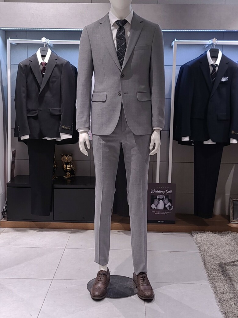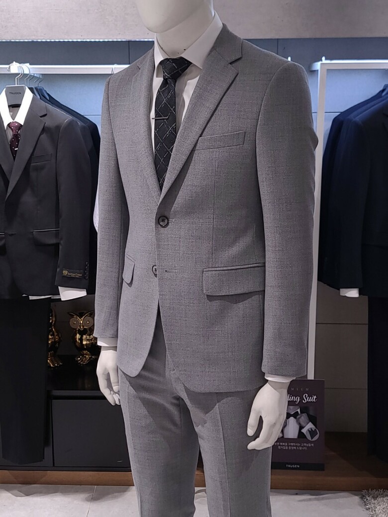 트루젠 봄 여름 라이트그레이 울스판 슬림핏 남자 정장세트 2222TJ007034