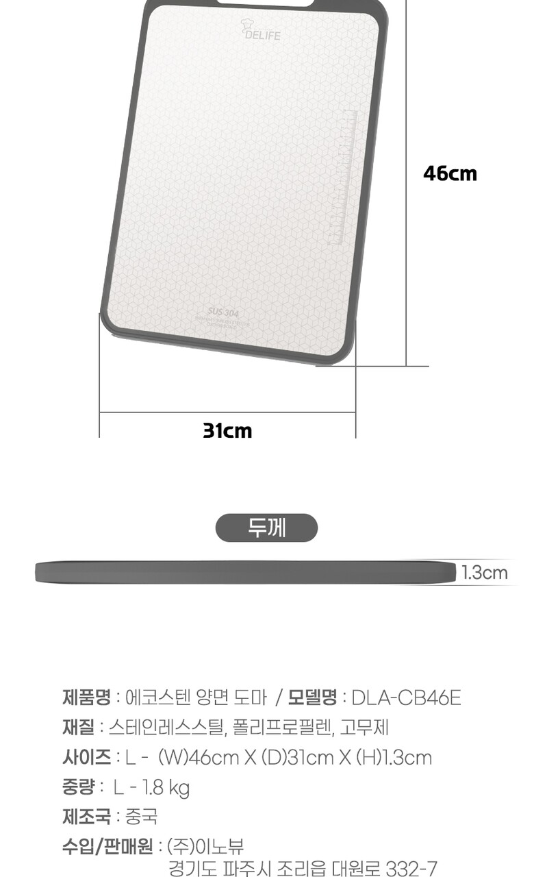 [디라이프] 에코스텐 양면 도마 (L사이즈)