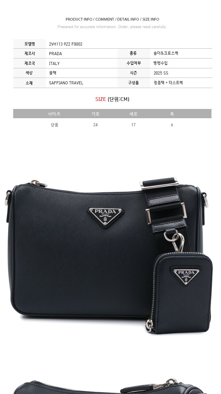 프라다 25SS 사피아노 숄더크로스백 블랙 2VH113 9Z2 F0002