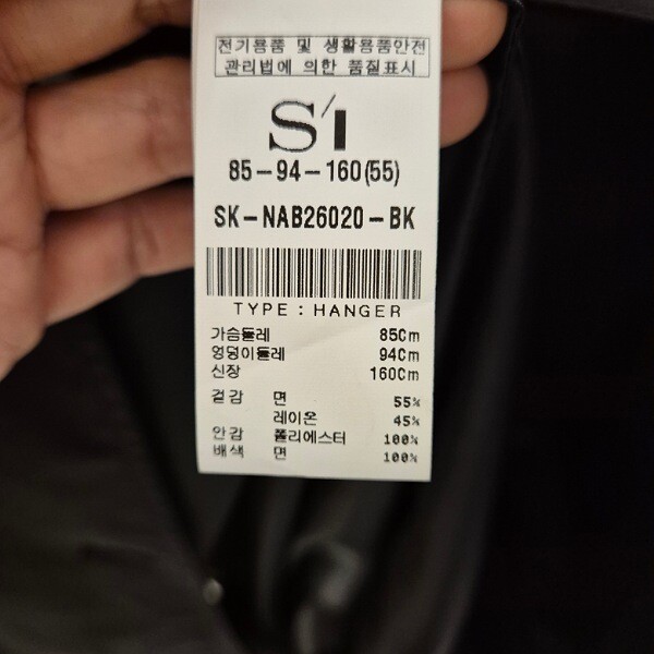 제품소재 : 겉감 면55% 레이온45% 안감 폴리에스터100% 배색 면100%