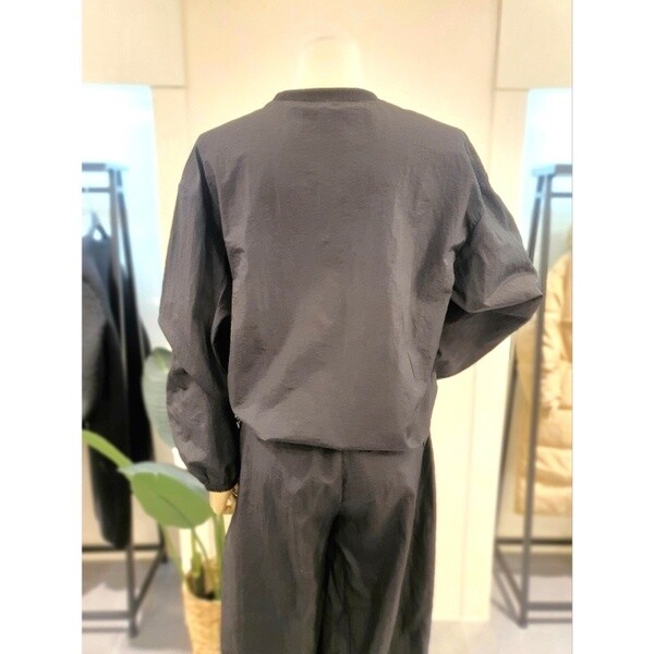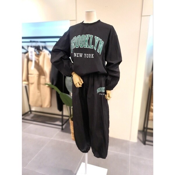 바스락 바람막이 소재의 맨투맨 조거팬츠 세트입니다. 여유있는 사이즈로 편하고 캐주얼하게 착용 가능합니다.