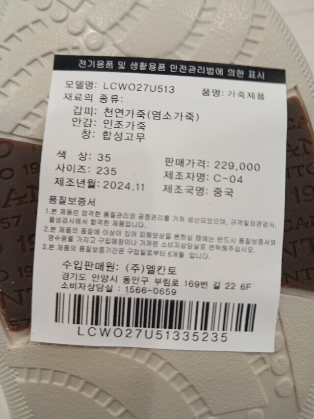 발바닥부분에는 착화감이 우수한 이탈리아의 공기주머니 공법을 사용하여 제작된 쿠셔닝 깔창으로인해 말랑말랑한 착화감을 느끼실수있는 제품입니다