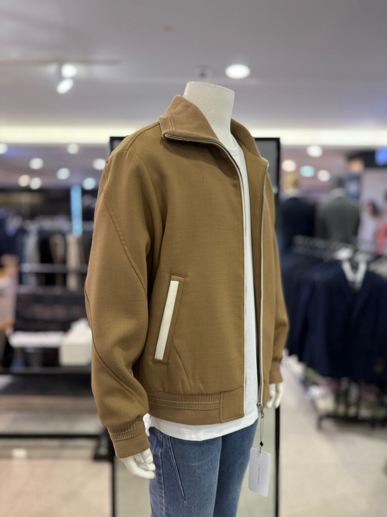 리버클래시 다크베이지 하이넥 레더배색 바시티 점퍼 LLS22513