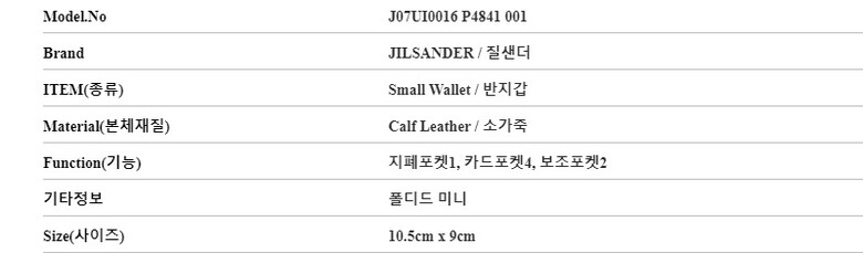 질샌더 J07UI0016 P4841 001 프렌치 폴디드 미니 반지갑