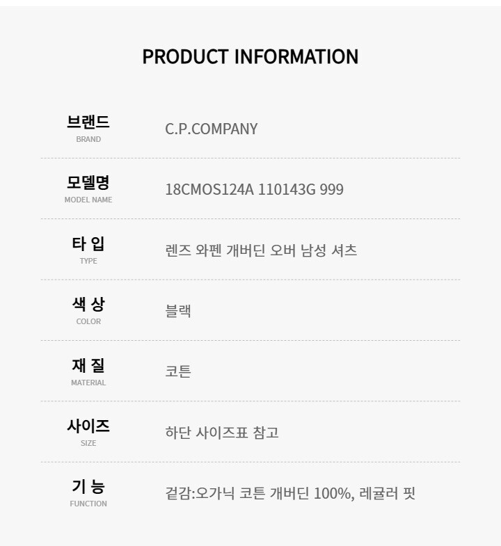 CP컴퍼니 18CMOS124A 110143G 999 렌즈 와펜 개버딘 오버 남성 셔츠