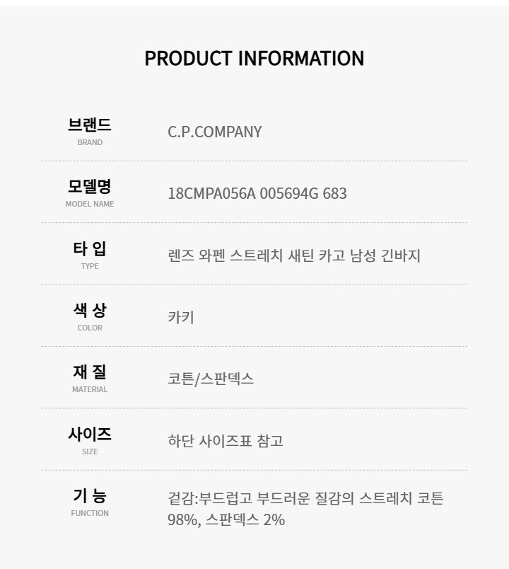 CP컴퍼니 18CMPA056A 005694G 683 렌즈 와펜 스트레치 새틴 카고 남성 긴바지