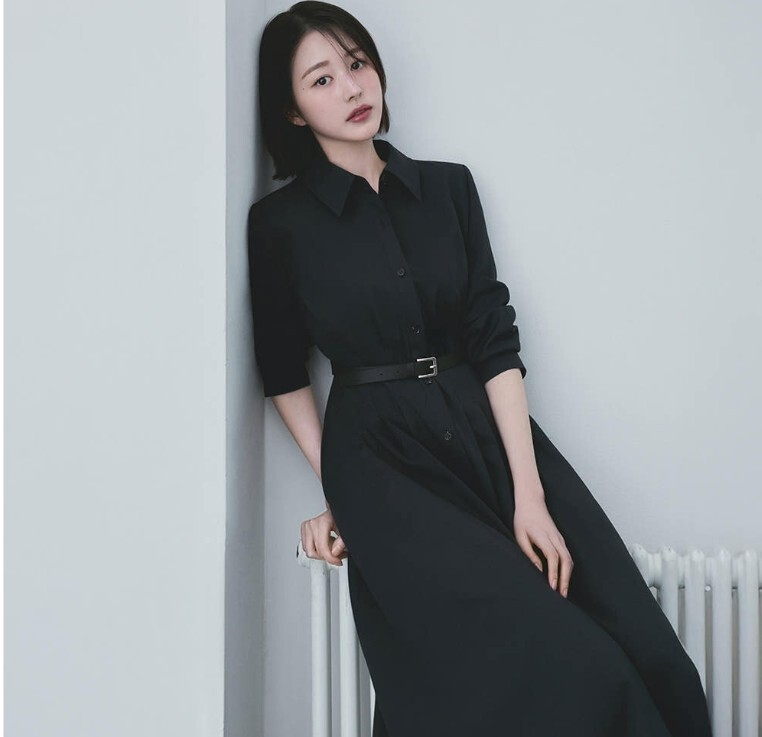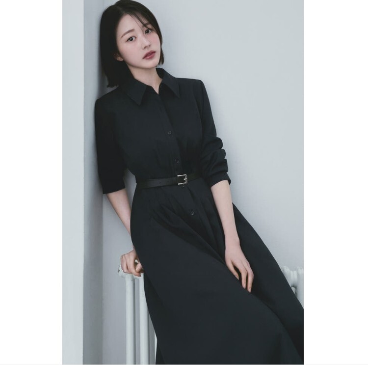 KENNETH LADY 레더벨트 핀턱 셔츠원피스(장다아 착용) EWOPPC0300