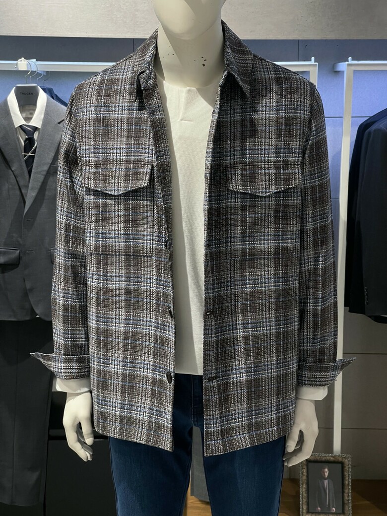 트루젠 봄여름 이태리수입 베이지체크 울코튼 아우터형 셔츠 자켓 2211JK035251