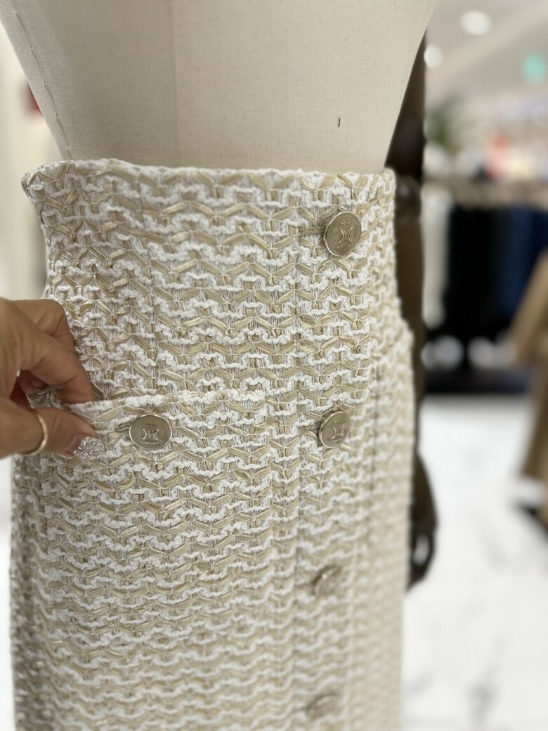 모조에스핀 단추 포켓 물결 트위드 스커트 J242MSD127