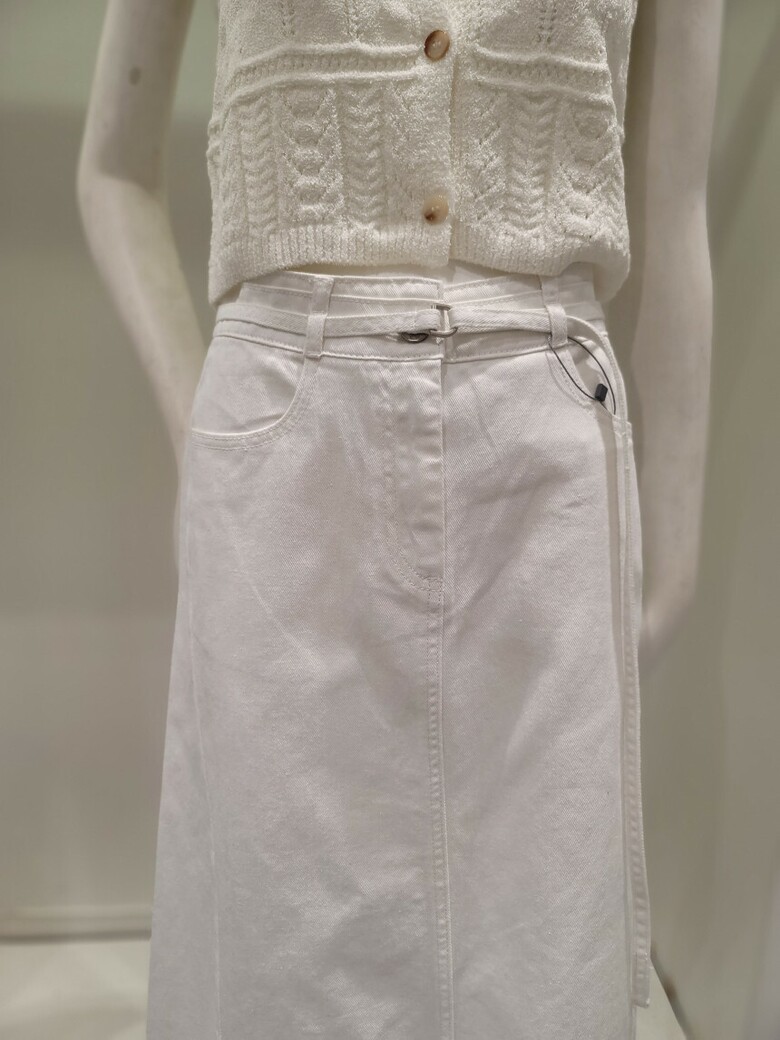 [온앤온] 벨티드 뒷밴딩 데님 롱 스커트 NJJ5SS209