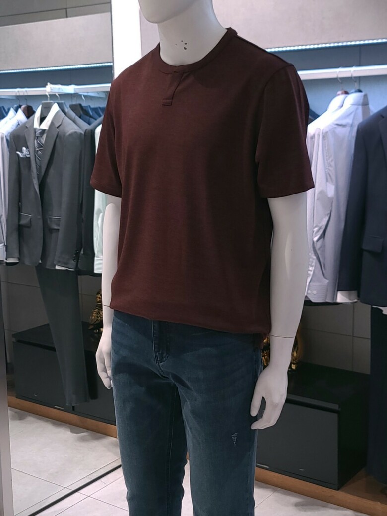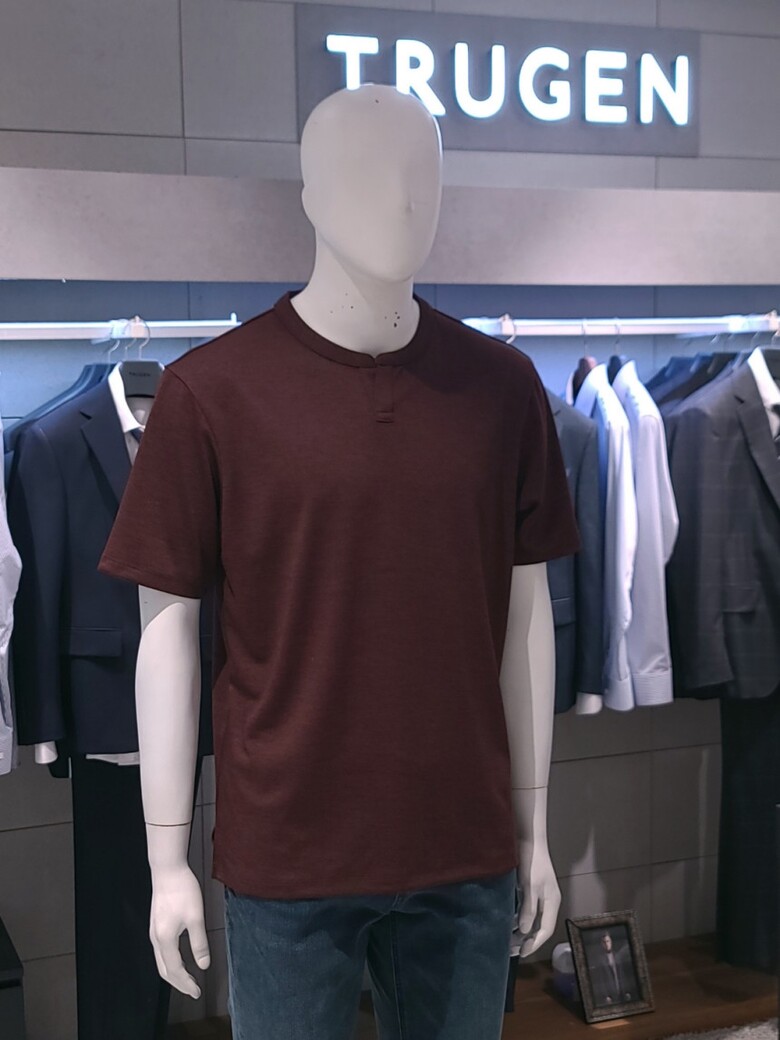트루젠 워셔블 와인 너치넥 남자 반팔 티셔츠 2222KS612094