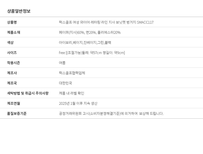 골피아 SMACC117 여성 와이어 레터링 라인 지사 보닛햇 벙거지