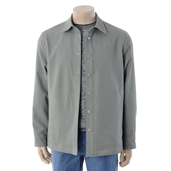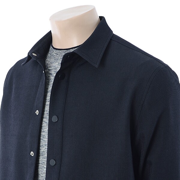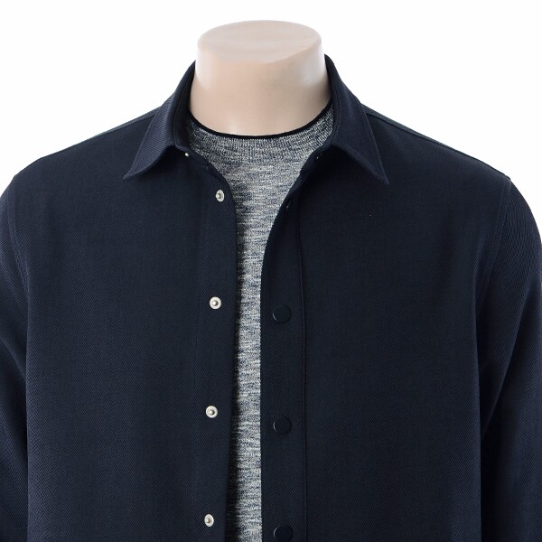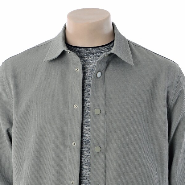 셔켓 아이템으로 간절기에는 아우터 안에 레이어드해서 입거나 아우터로 활용할 수 있는 택스쳐감 있는 고급스러운 트윌 원단을 사용하고 심플한 디자인에 안감이 없는 홀겹 셔츠형 아우터