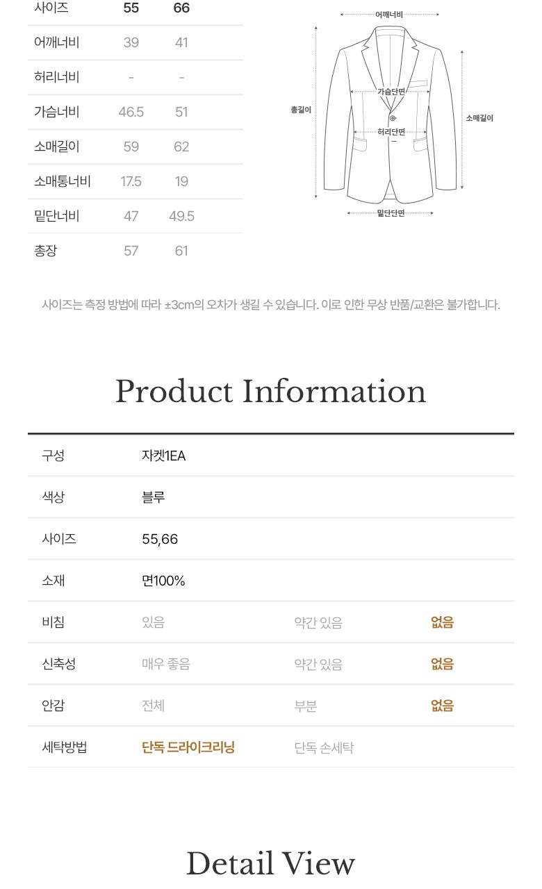 • 처음 배송된 상품상태와 다를 경우(세탁/착용 후 외출하신 경우) 반품이 불가합니다.