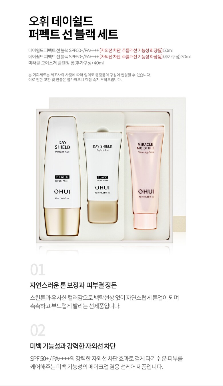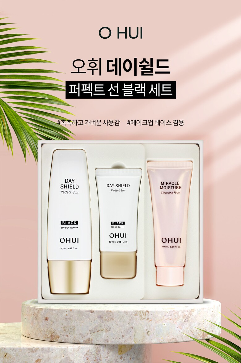 오휘 NEW 데이쉴드 퍼펙트 선 블랙 스페셜 세트 / 촉촉한 선크림 메이크업베이스 겸용