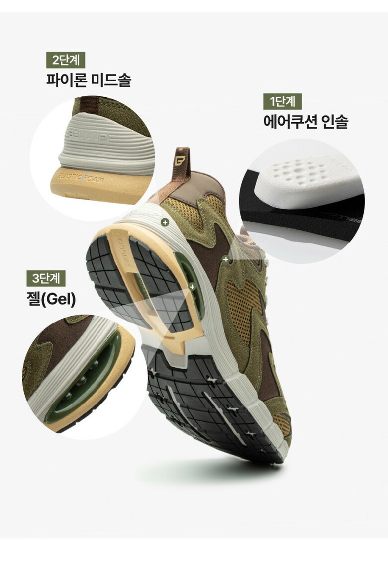 밸롭 투톤배색 플렉스젤 스니커즈 카키 BA01010035KA 남녀공용 캐주얼 운동화
