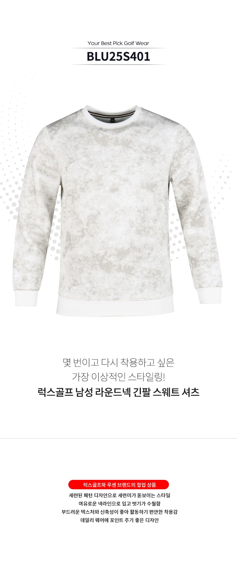 럭스골프 남성 라운드넥 긴팔 스웨트 셔츠 BLU25S401