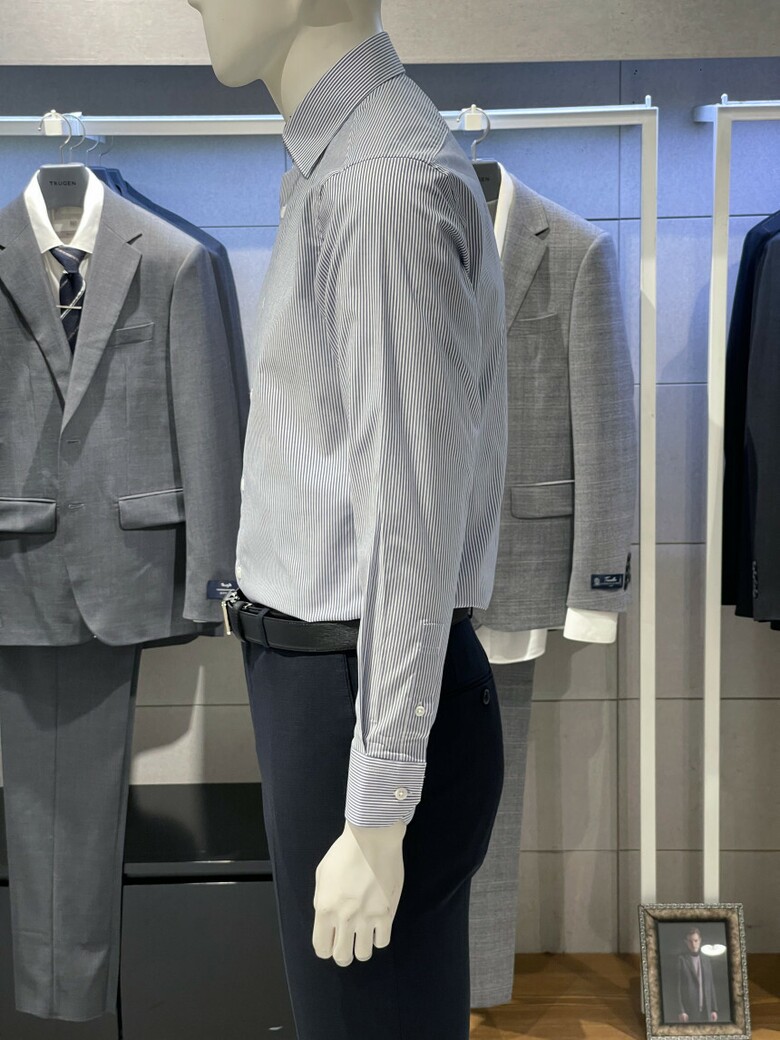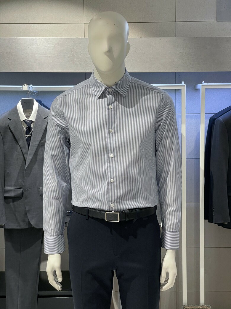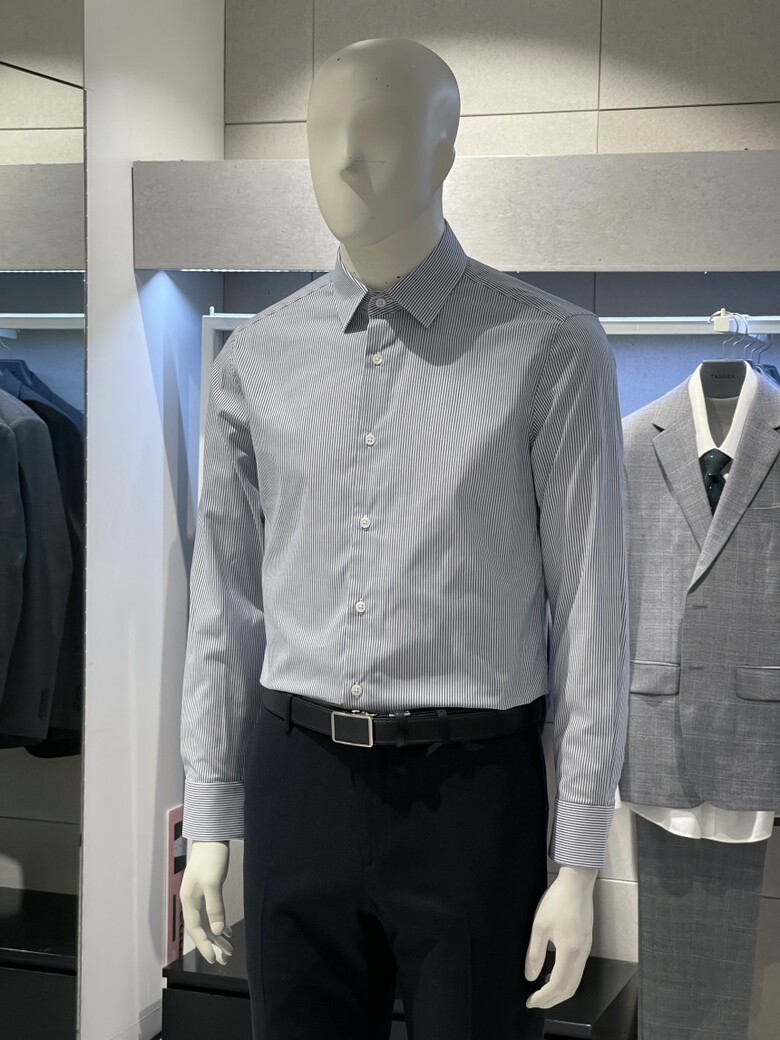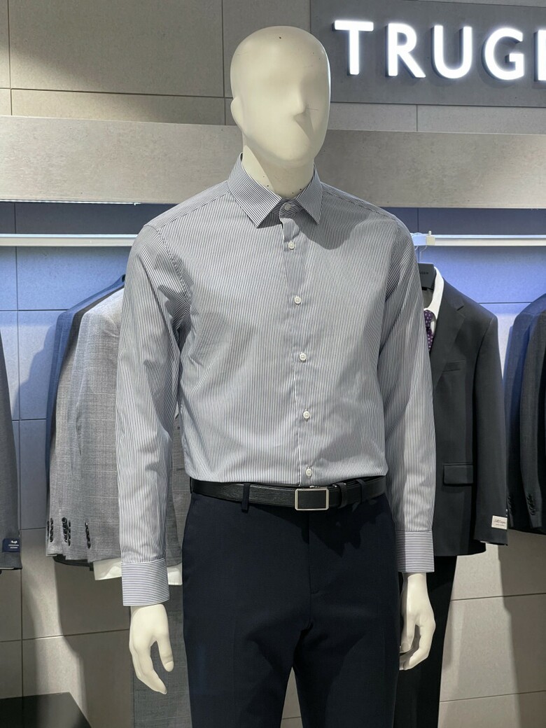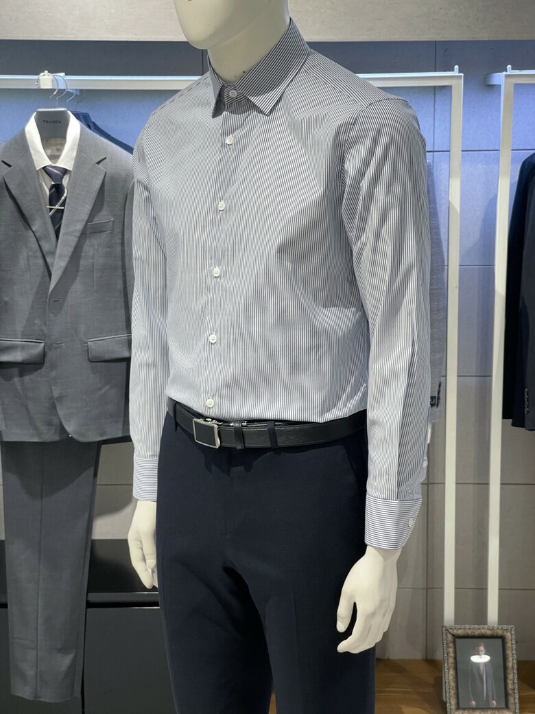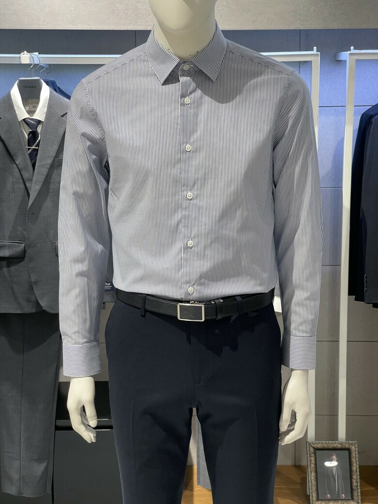 트루젠 이지케어 네이비 스트라이프 기본핏 면스판 남자 긴팔셔츠 2211RD011314