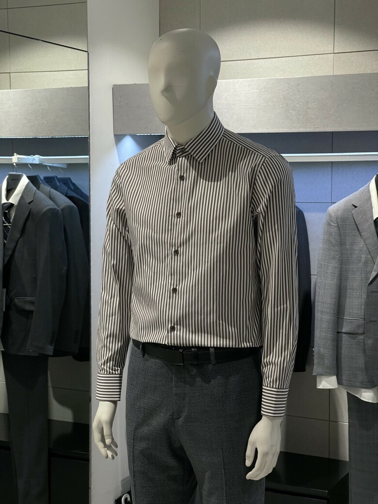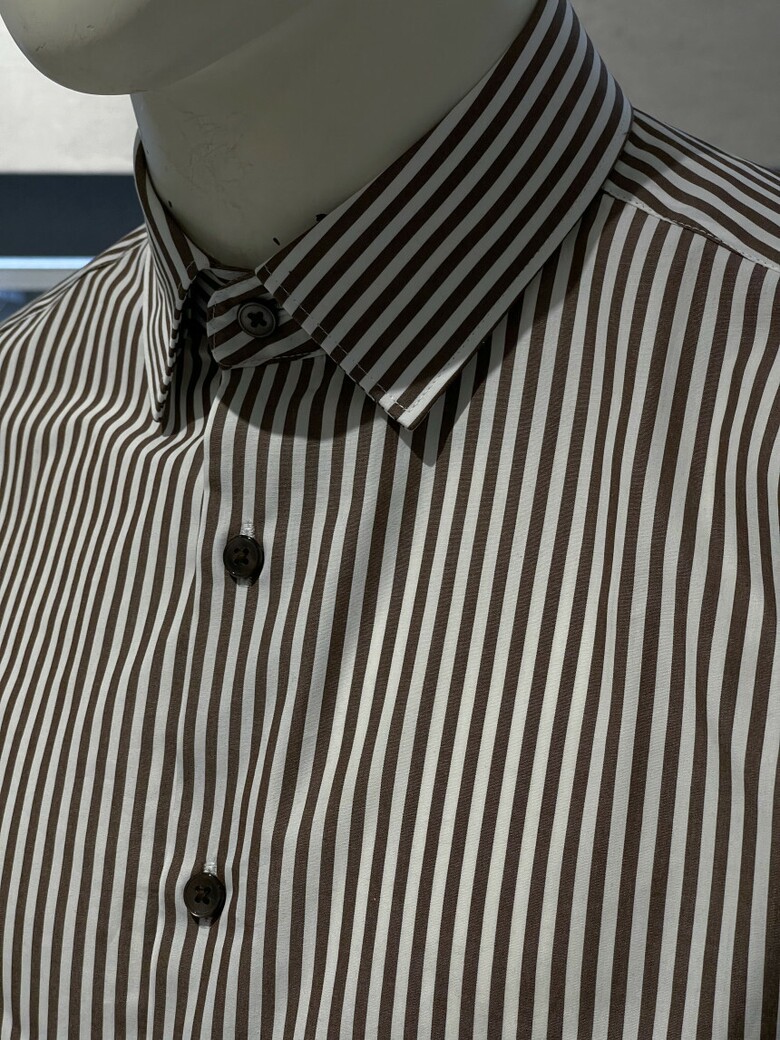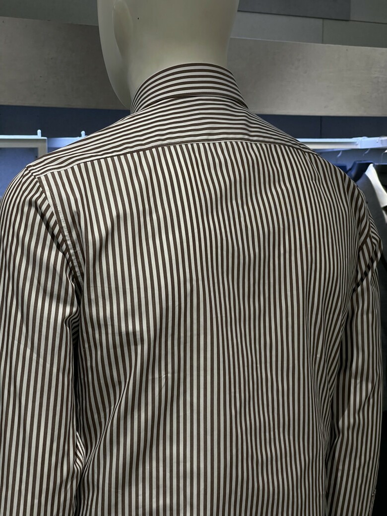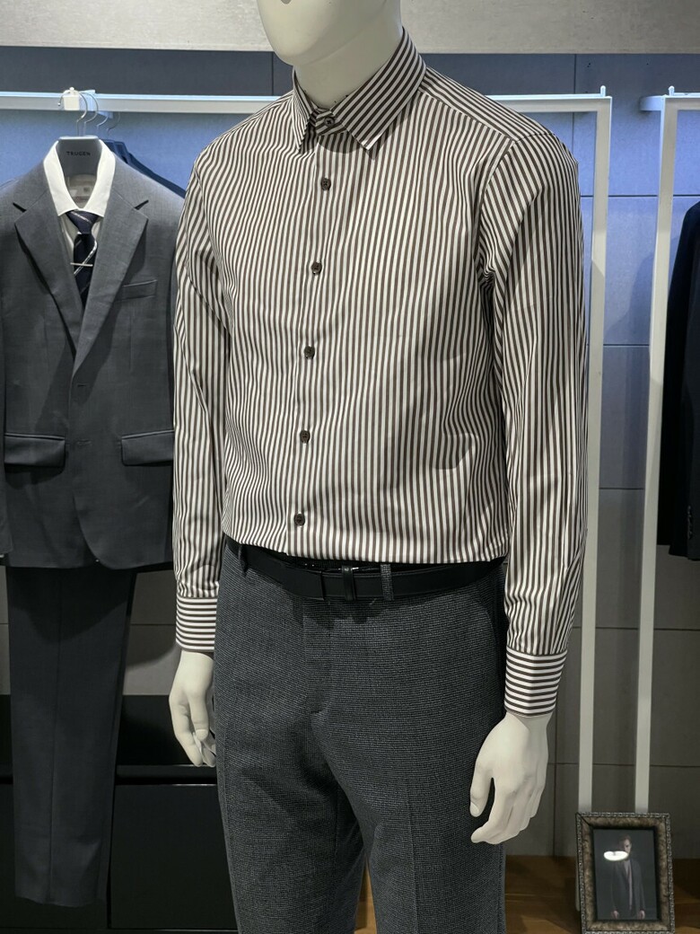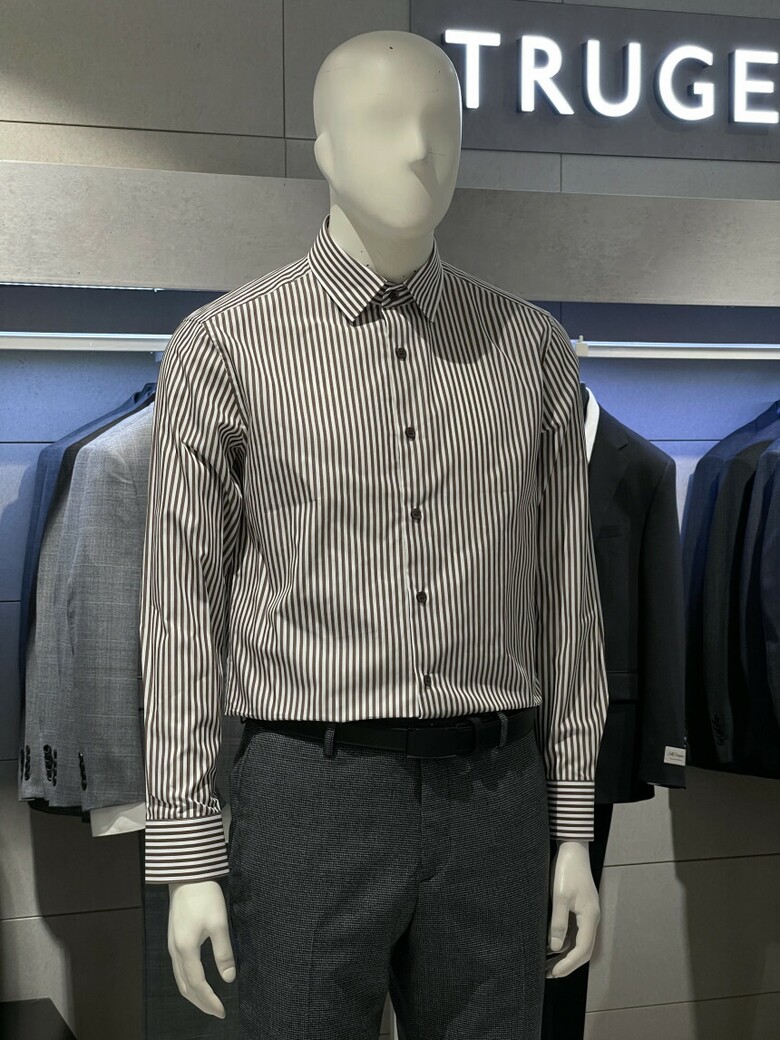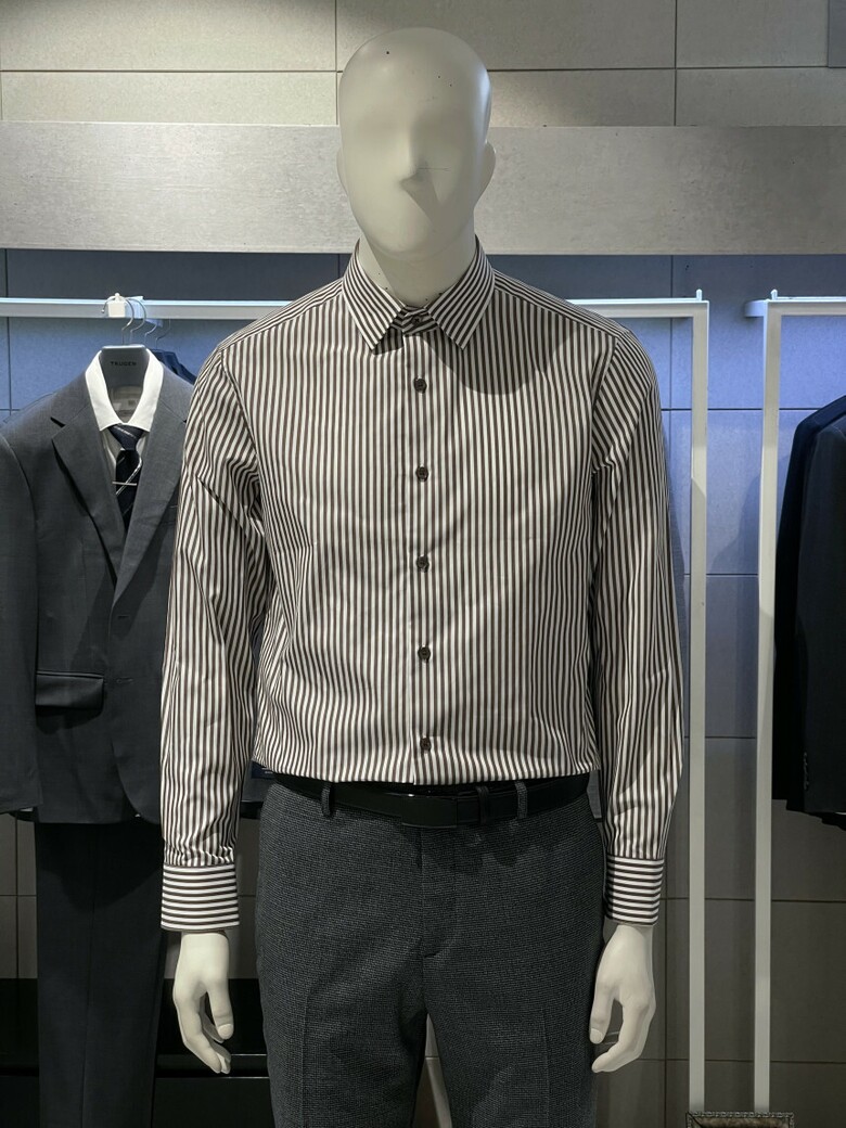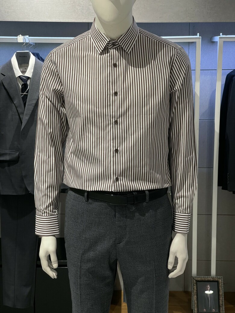 트루젠 브라운 스트라이프 기본핏 면스판 남자 긴팔셔츠 2211RD031313