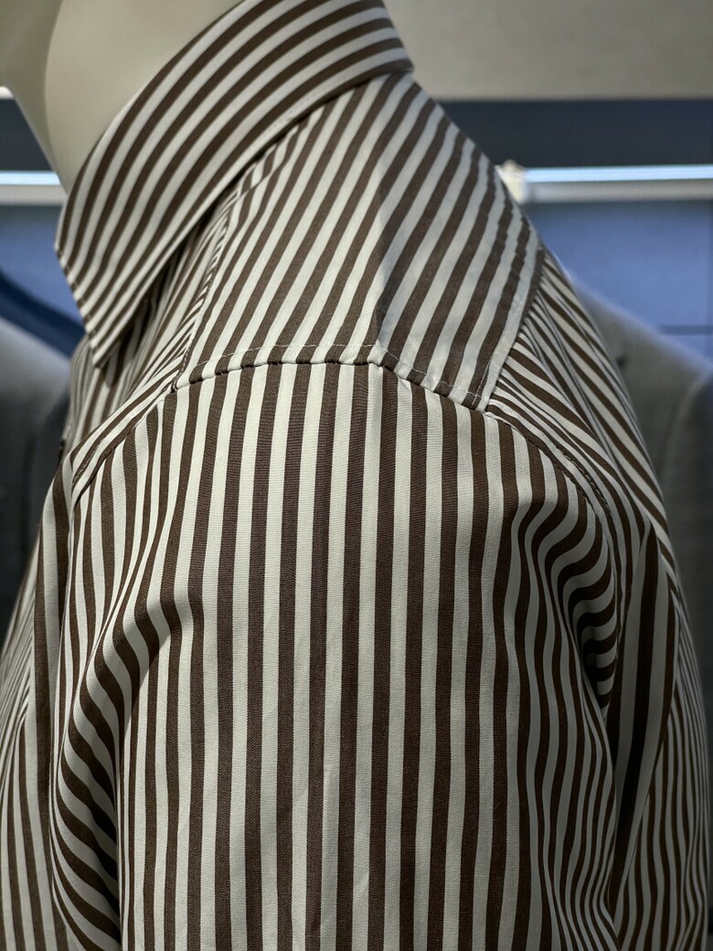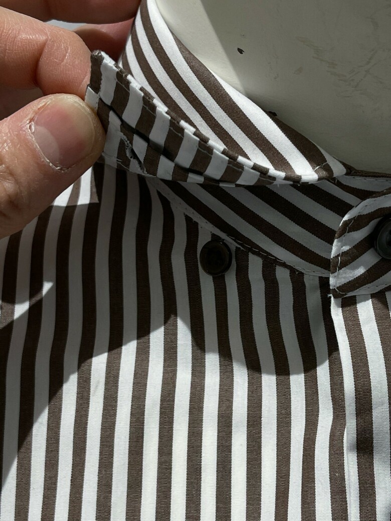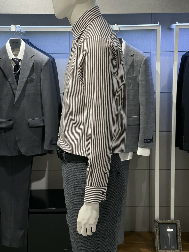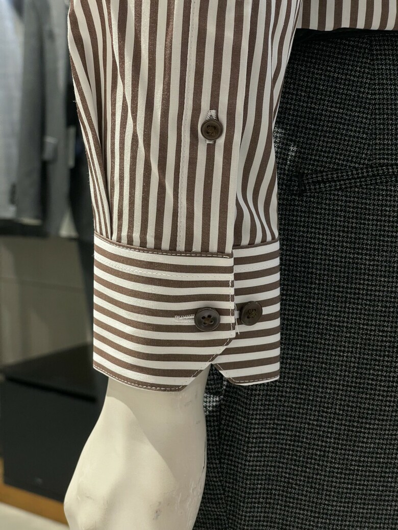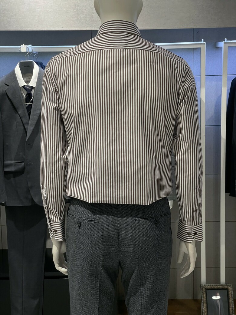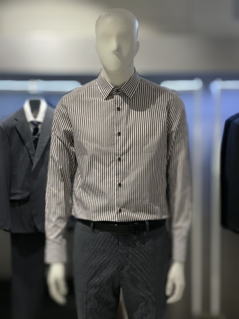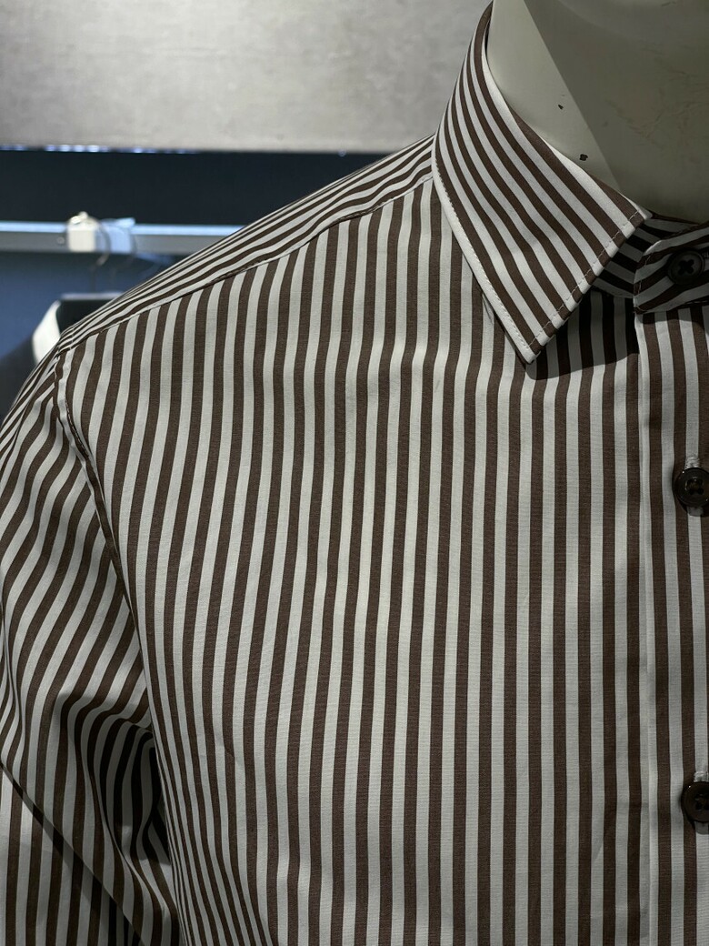 트루젠 브라운 스트라이프 기본핏 면스판 남자 긴팔셔츠 2211RD031313