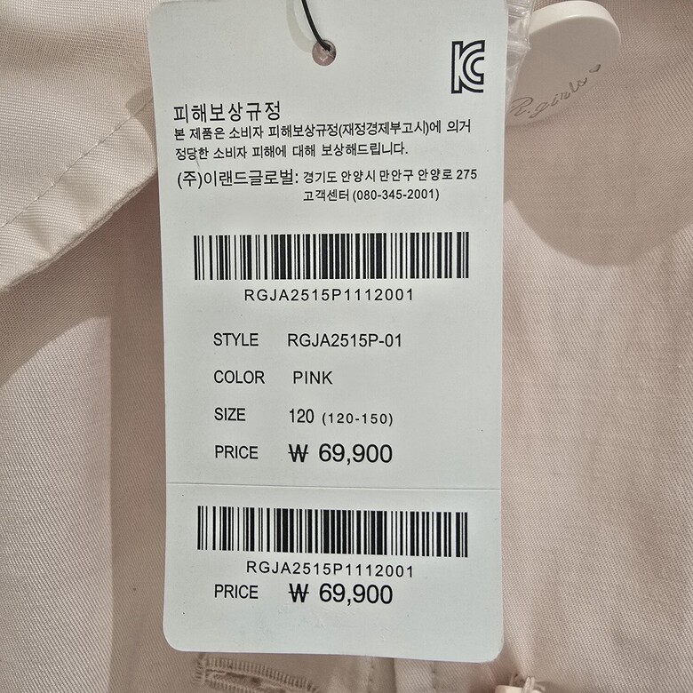 | 6. 세탁방법 및 취급시 주의사항 | 상품상세참조 |