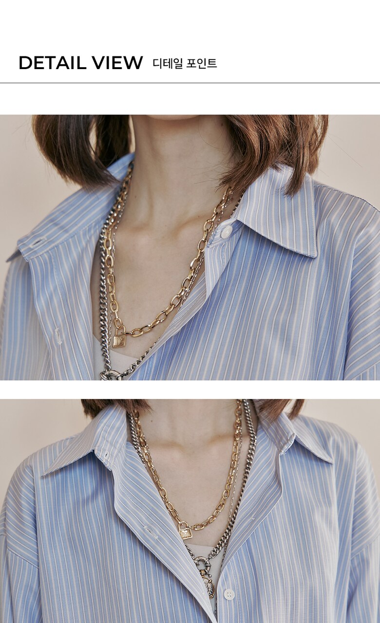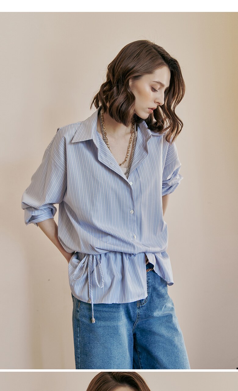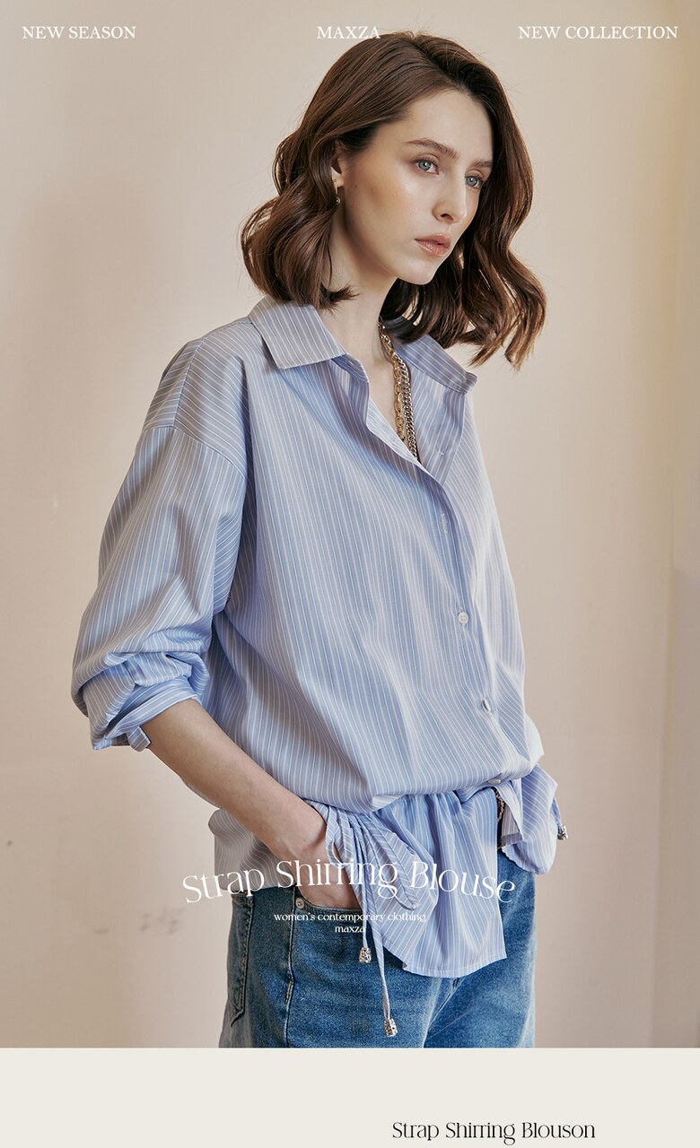 스트랩 셔링 블루종 스트라이프 셔츠 블라우스