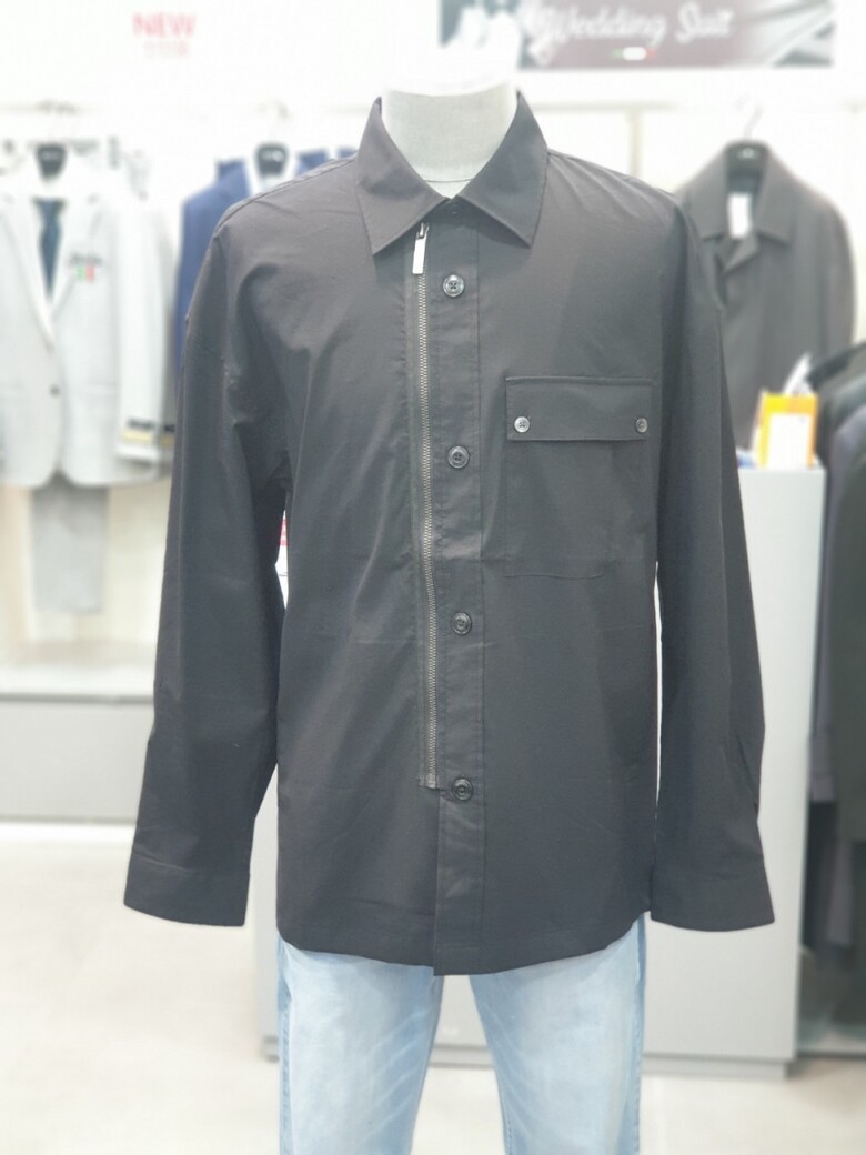 BON 23SS 블랙 면혼방 지퍼 디테일 캐주얼 긴팔남방셔퍼BN3SBA634BK