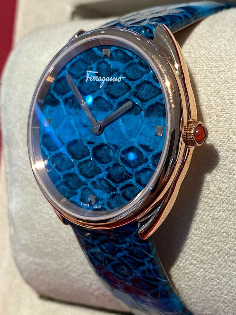 페라가모 퀴이르 엘라페 블루 여성 가죽시계 SFAY00319