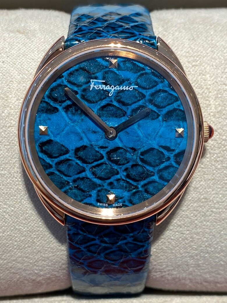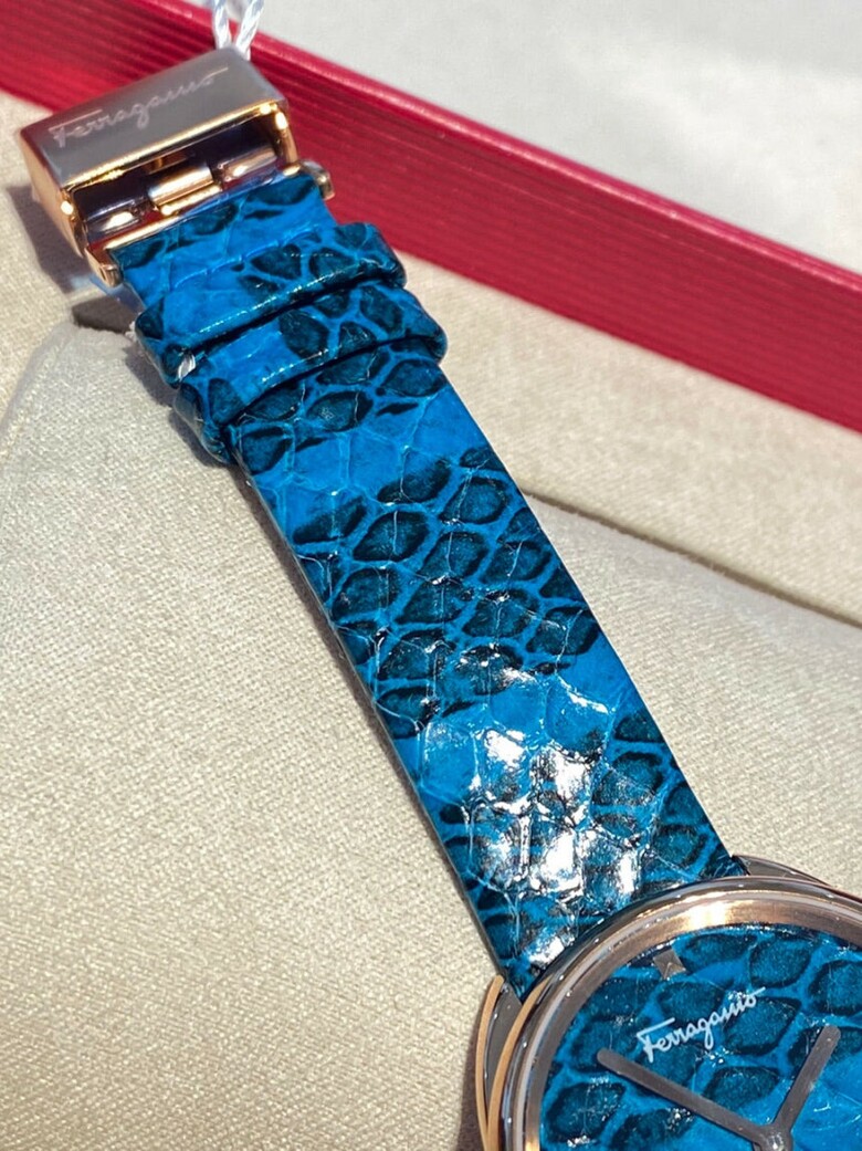 [FERRAGAMO] 페라가모 퀴이르 엘라페 블루 여성 가죽시계 SFAY00319