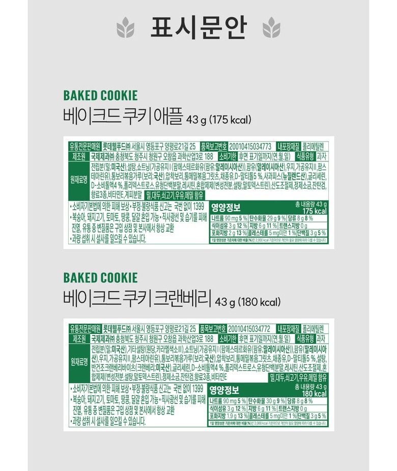 [롯데] 이너프 통곡물 베이크드 쿠키 크랜베리 43g