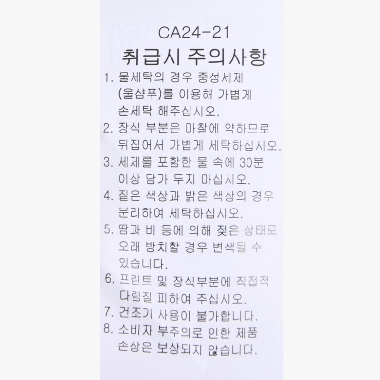 | 6. 세탁방법 및 취급시 주의사항 | 상품상세참조 |