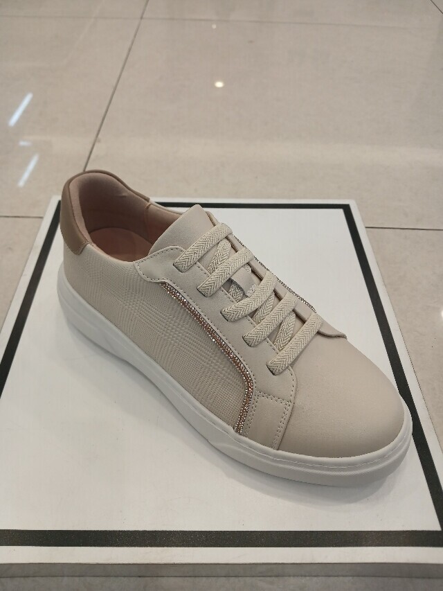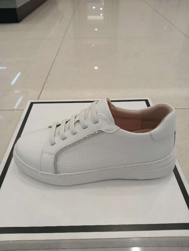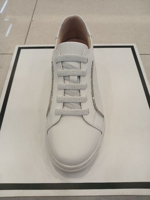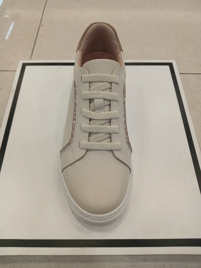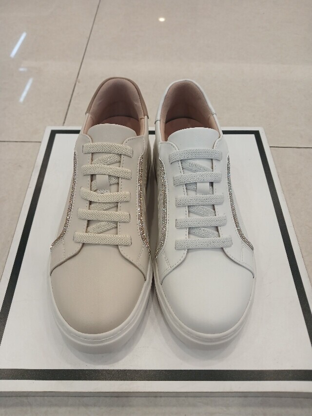 굽높이 약4cm의 높이에 천연소가죽소재를 사용하여 특수공법으로 가공처리하여 제작된 여성 쿠셔닝 스니커즈입니다