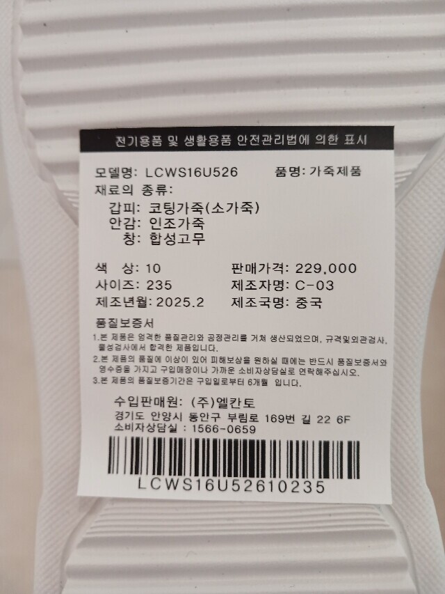| 1. 제품 소재 (운동화인 경우에는 겉감, 안감을 구분하여 표시) | 상품상세참조 |