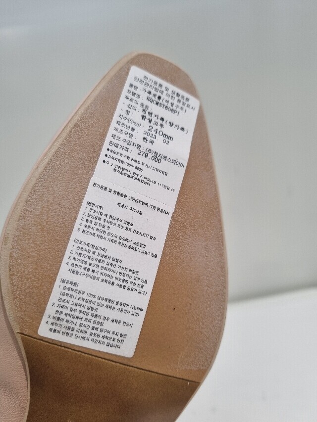 | 1. 제품 소재 (운동화인 경우에는 겉감, 안감을 구분하여 표시) | 양가죽 |