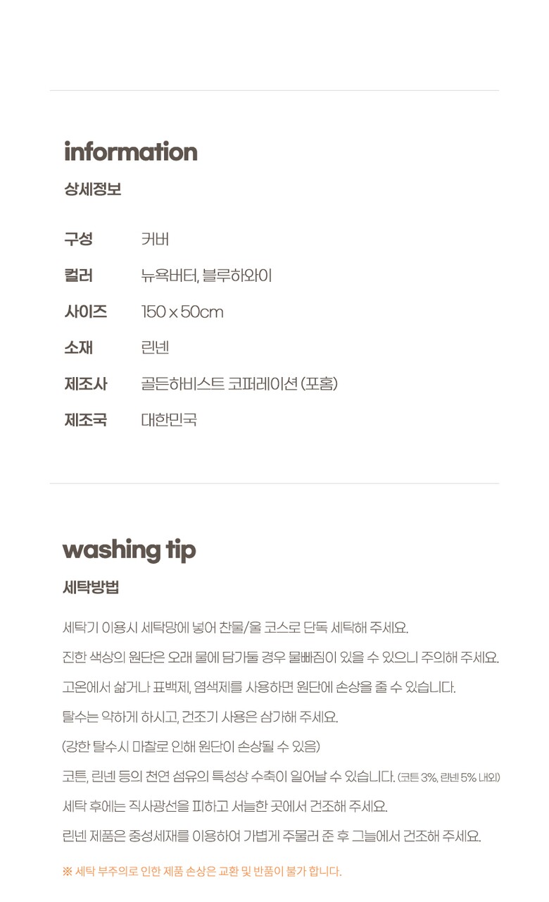 7. 세탁방법 및 취급시 주의사항 | 상세페이지 참조 |