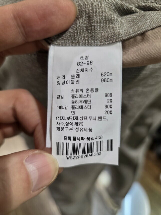 겉감 : 폴리에스터 98% , 폴리우레탄 2%