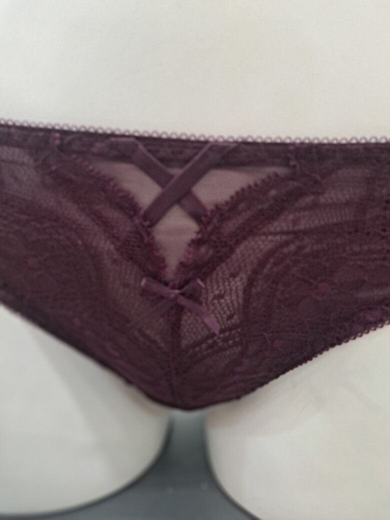 1.고급스러운 퍼플 컬러와 앞판 X 스트링 포인트로 섹시함을 강조한 제품.