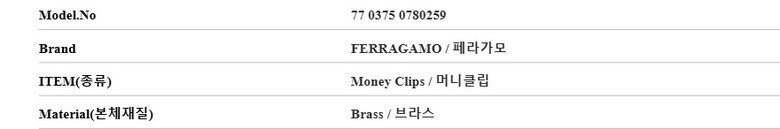 페라가모 77 0375 0780259 (770375 780259) 간치니 머니클립