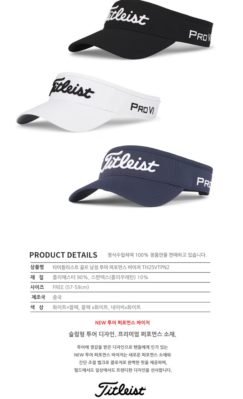 타이틀리스트 남성 투어 퍼포먼스 바이저 TH25VTPN2