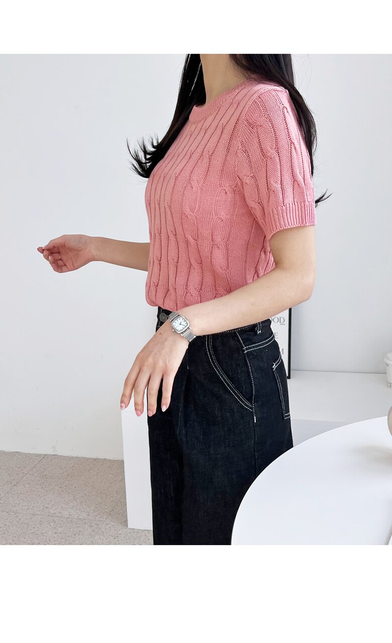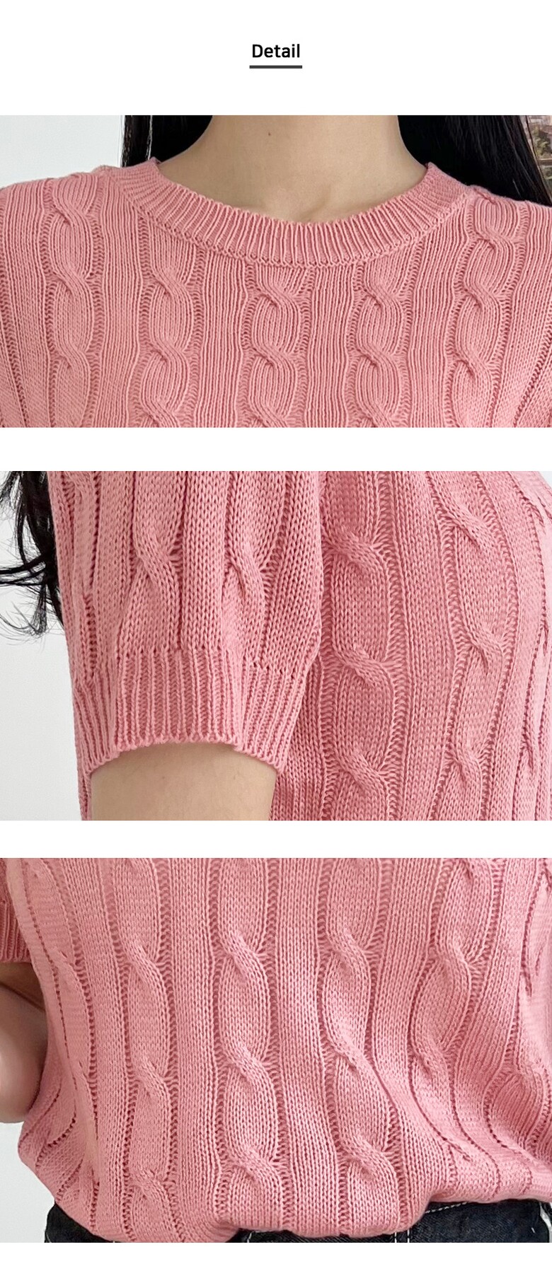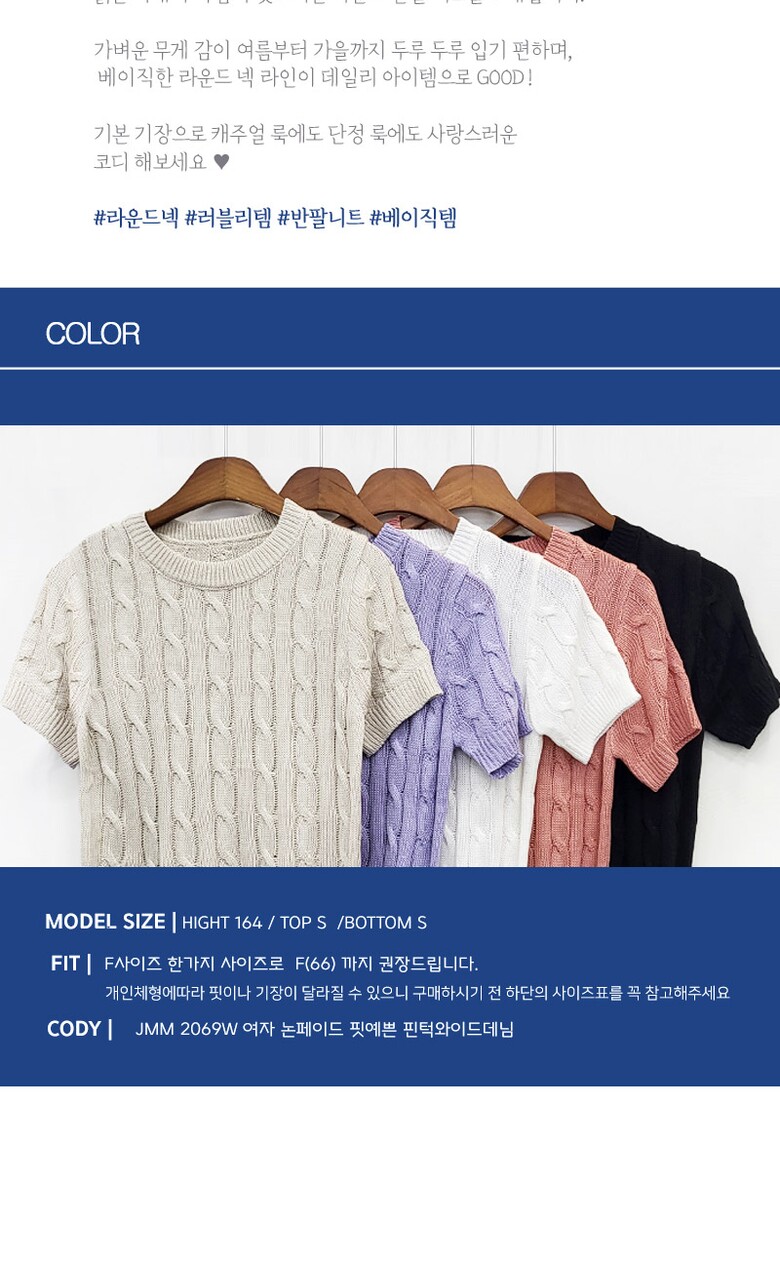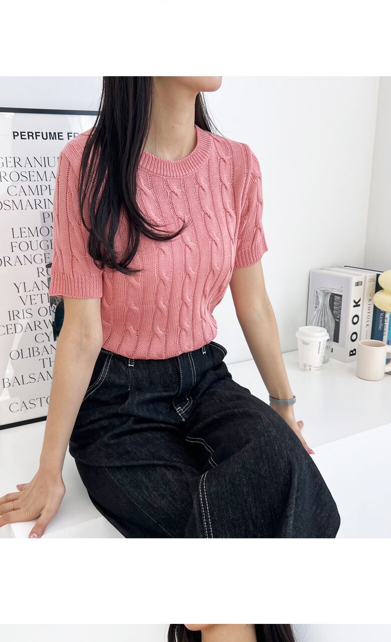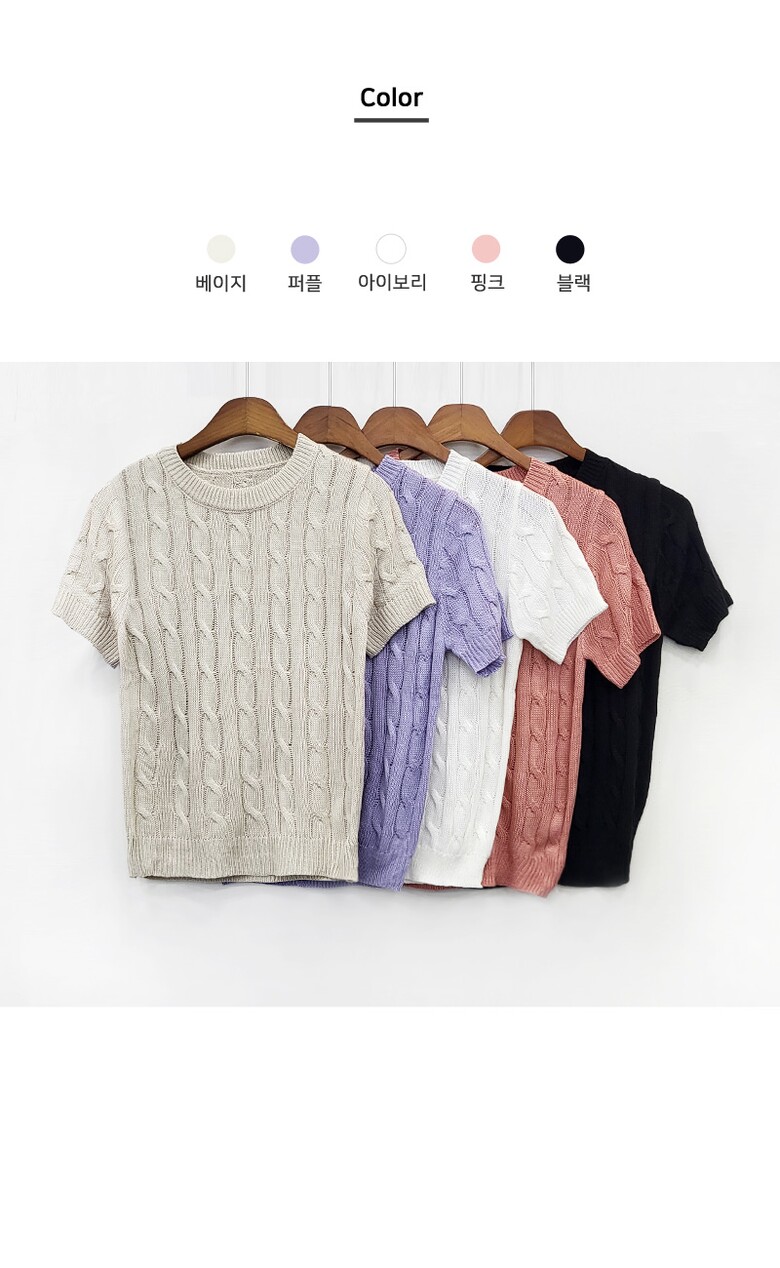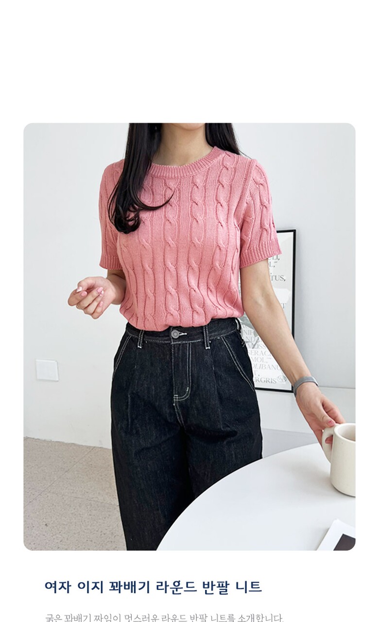 골피아 여자 이지꽈배기 라운드 반팔 니트 여성 데일리 스웨터