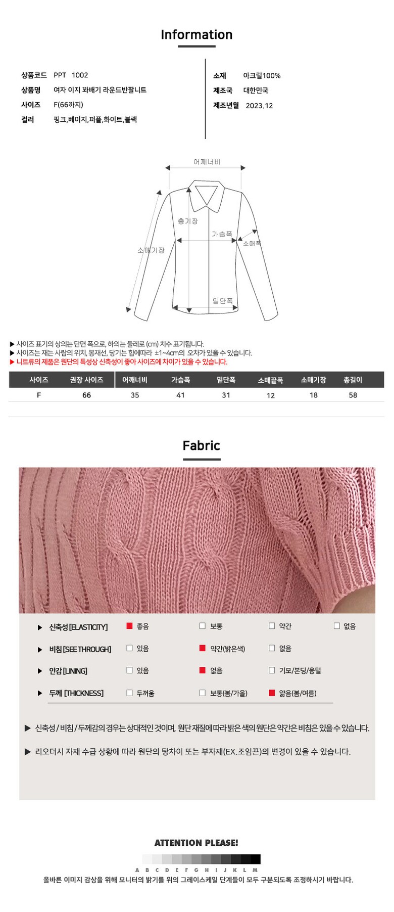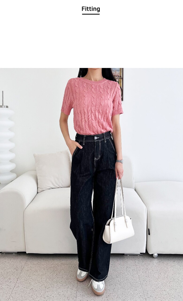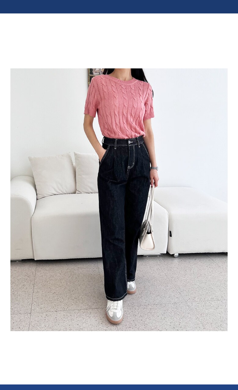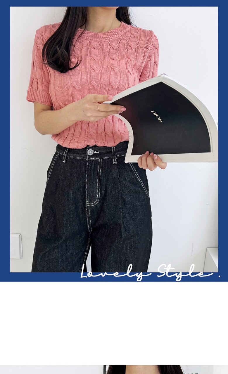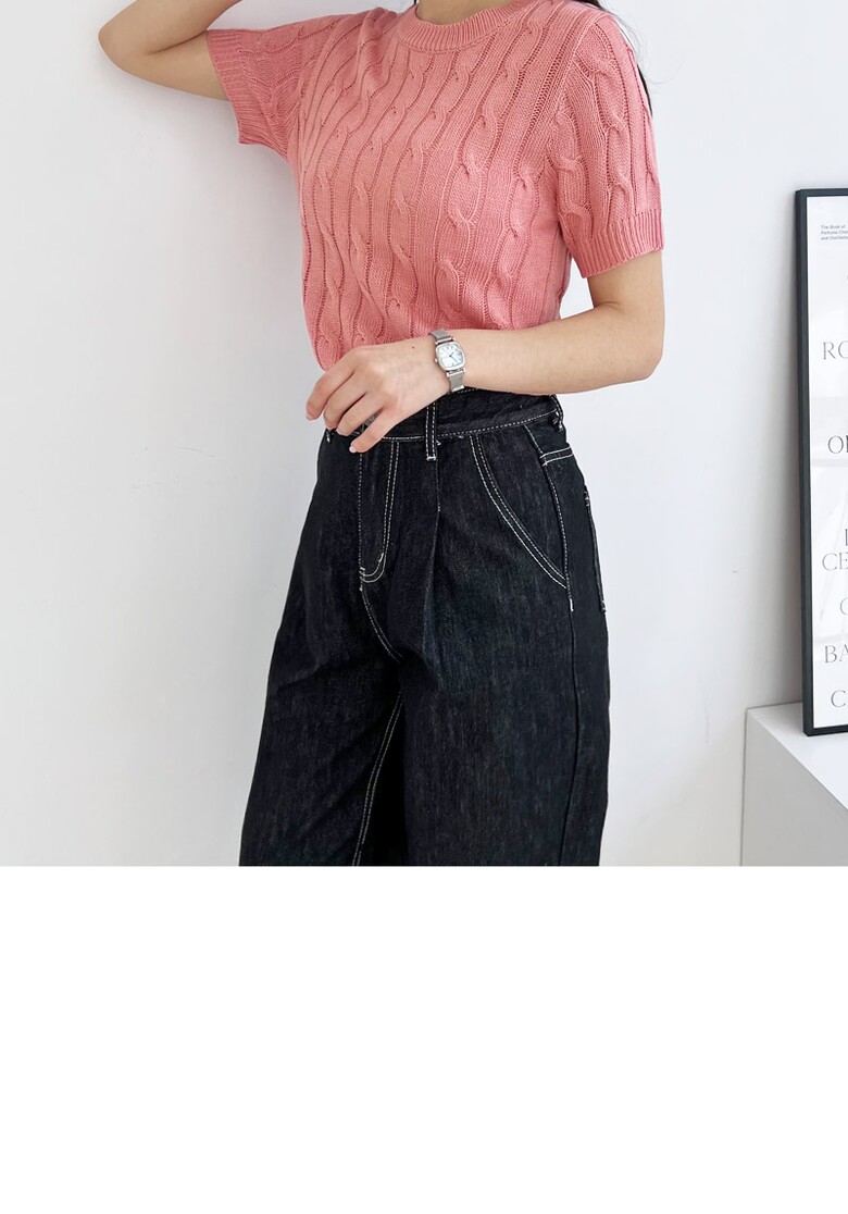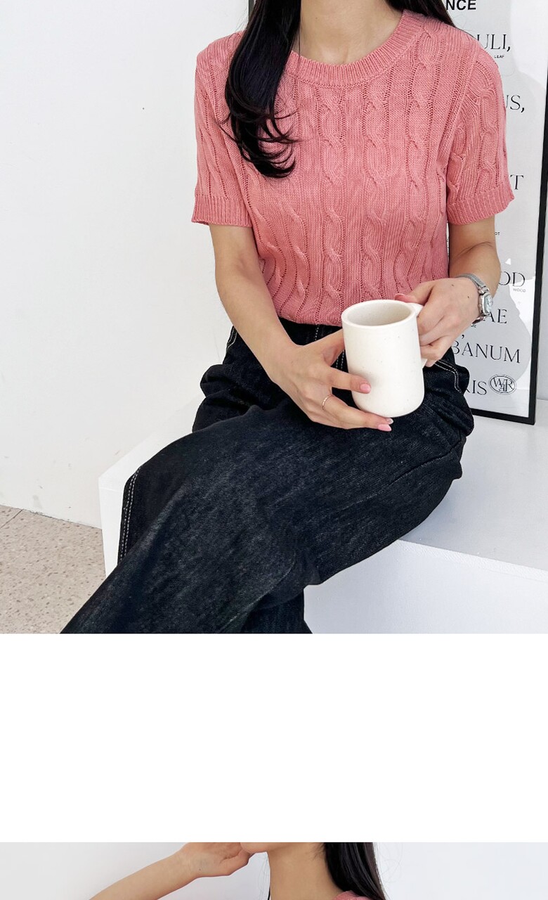 골피아 여자 이지꽈배기 라운드 반팔 니트 여성 데일리 스웨터