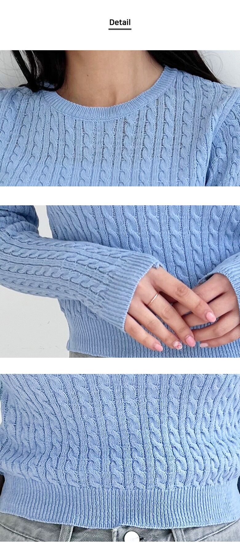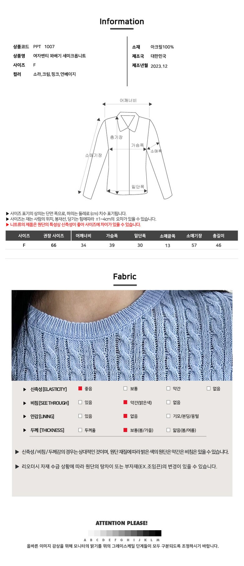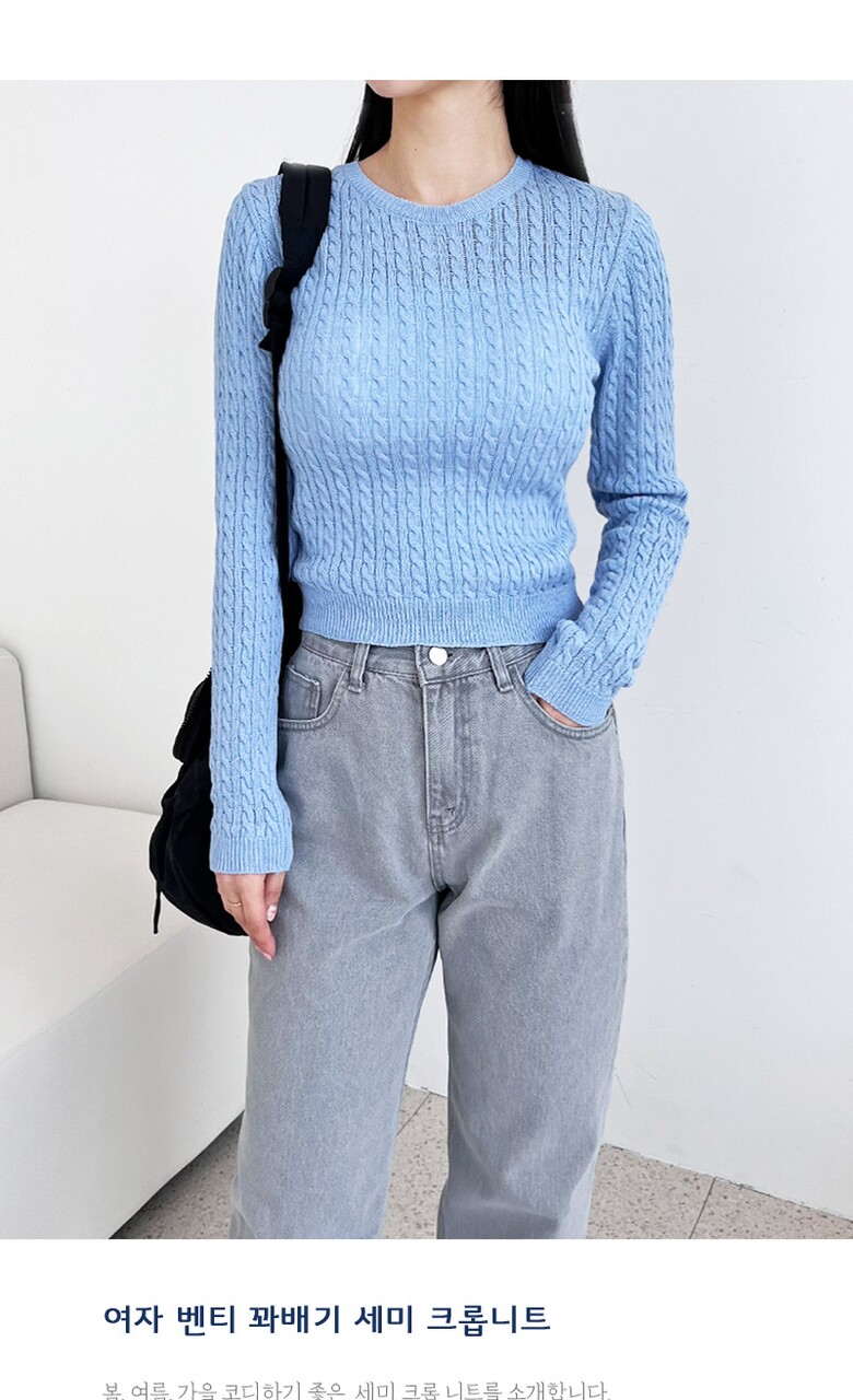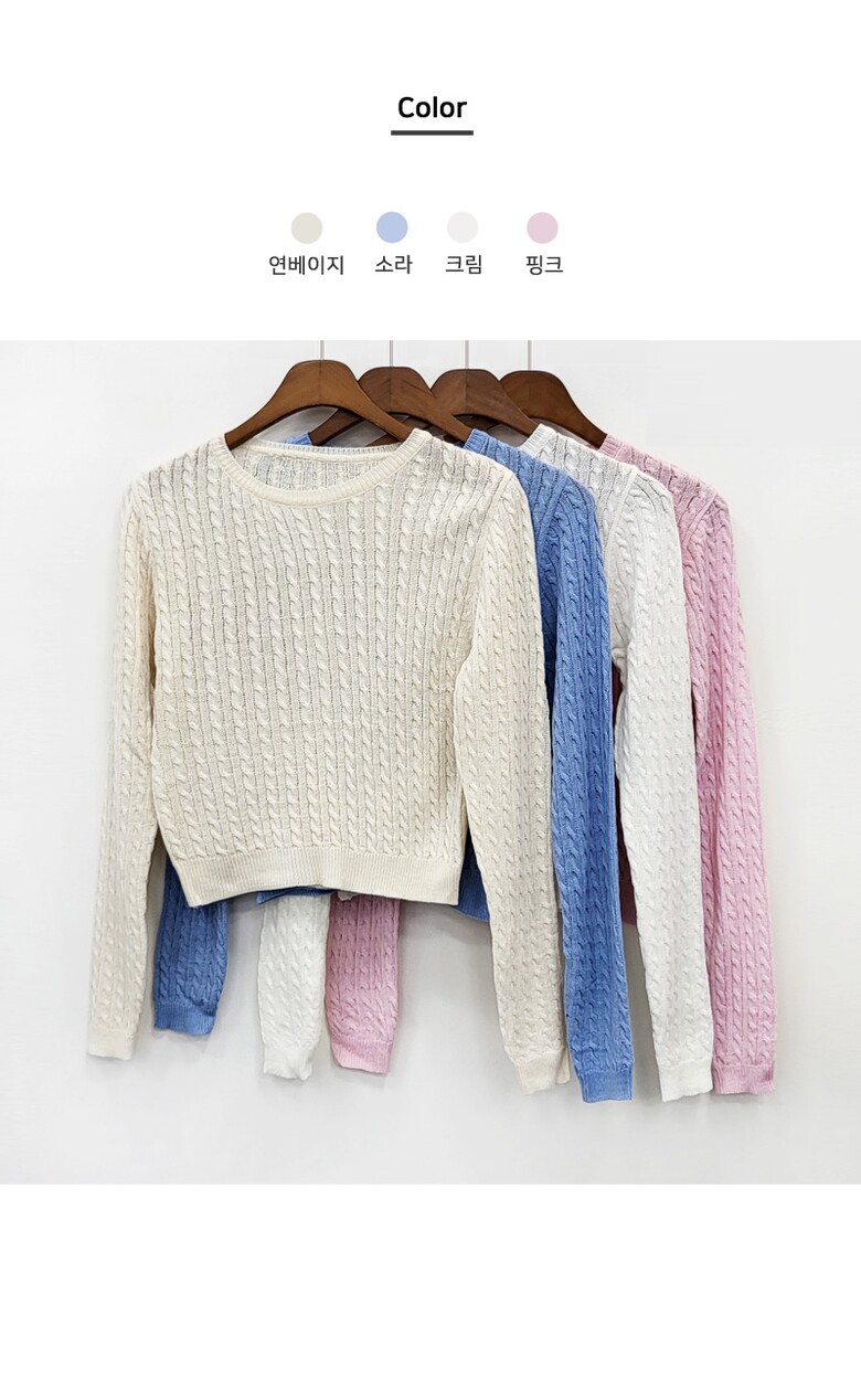 골피아 여자 벤티 꽈배기 세미 크롭 니트 여성 데일리 스웨터