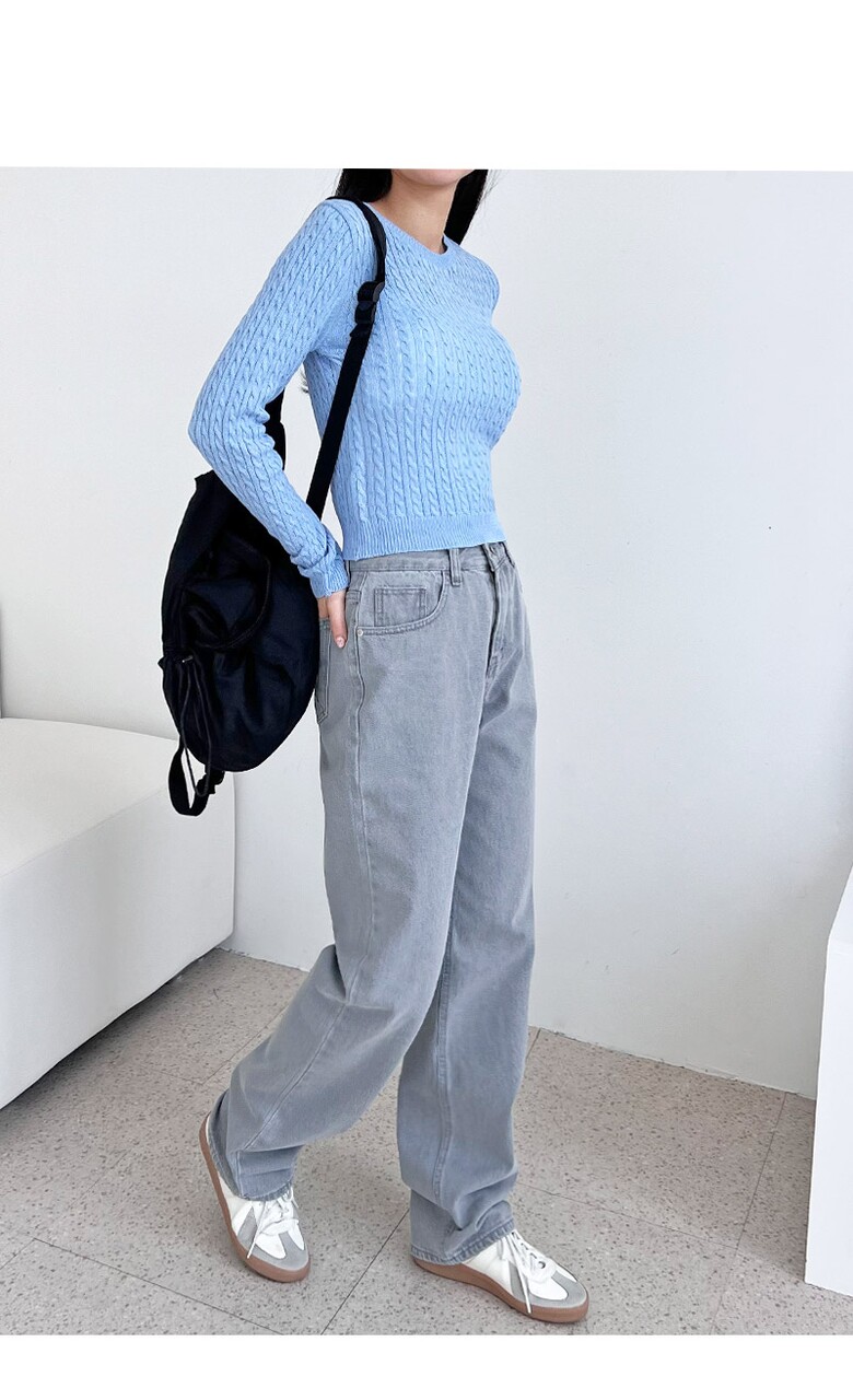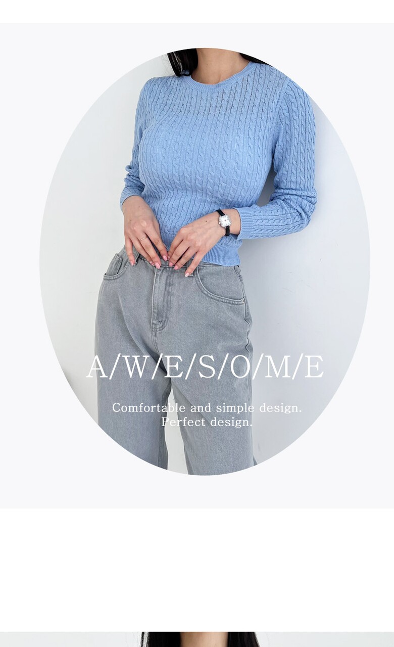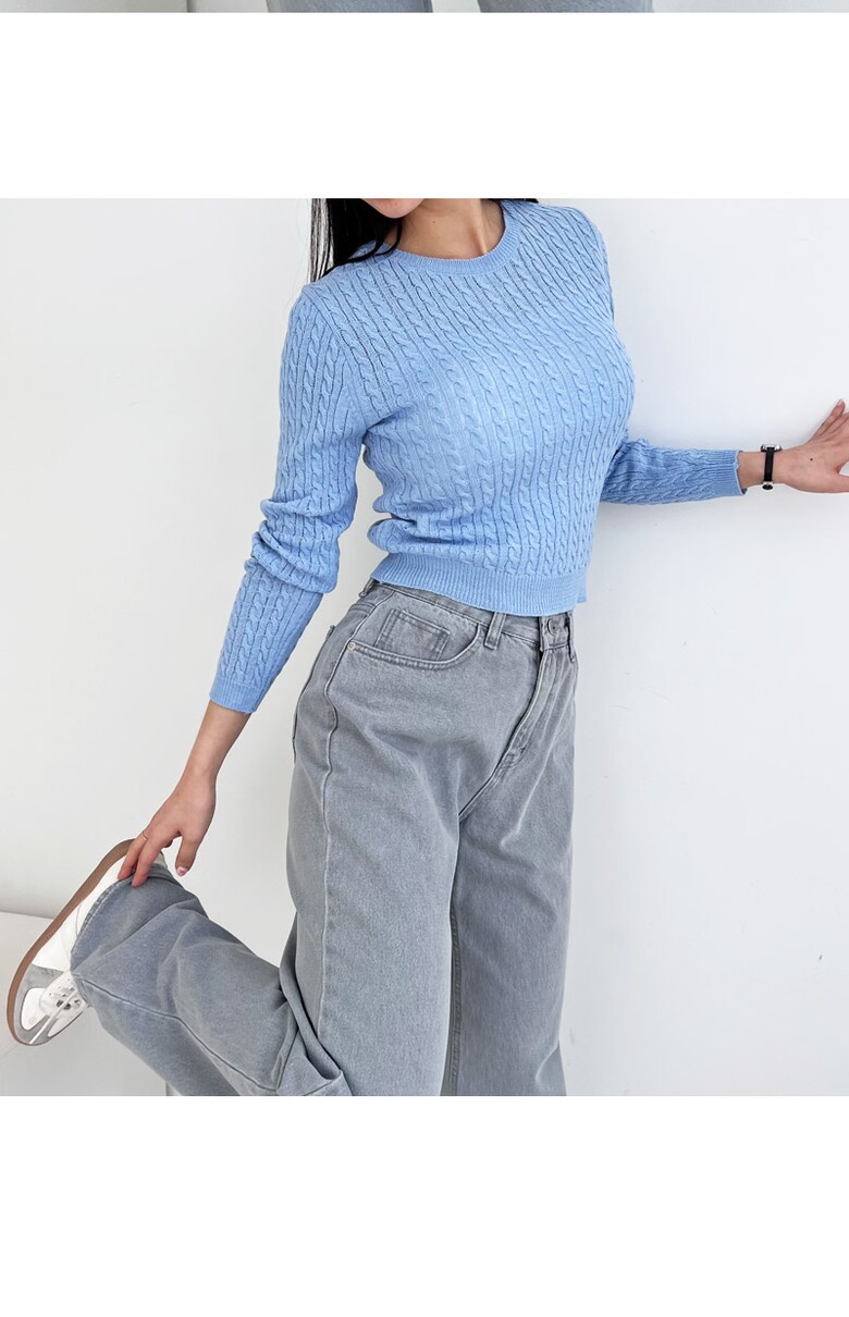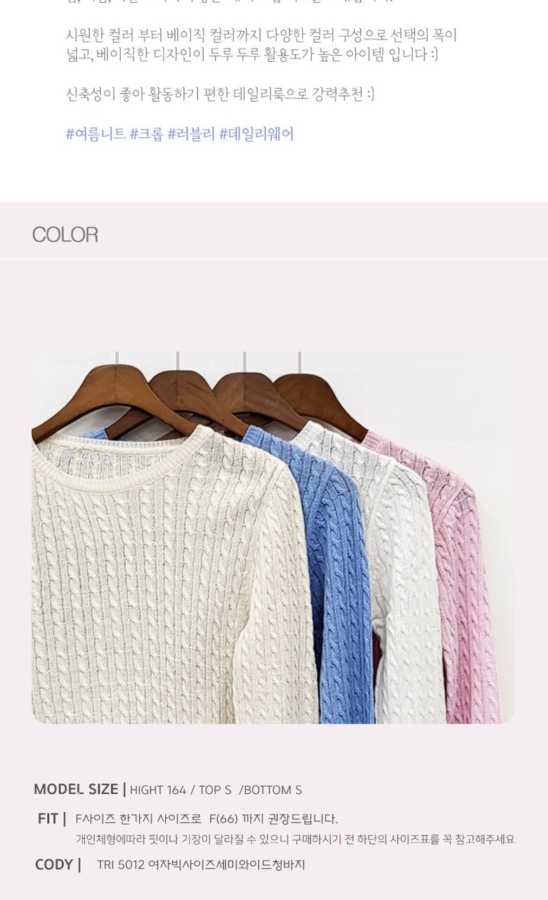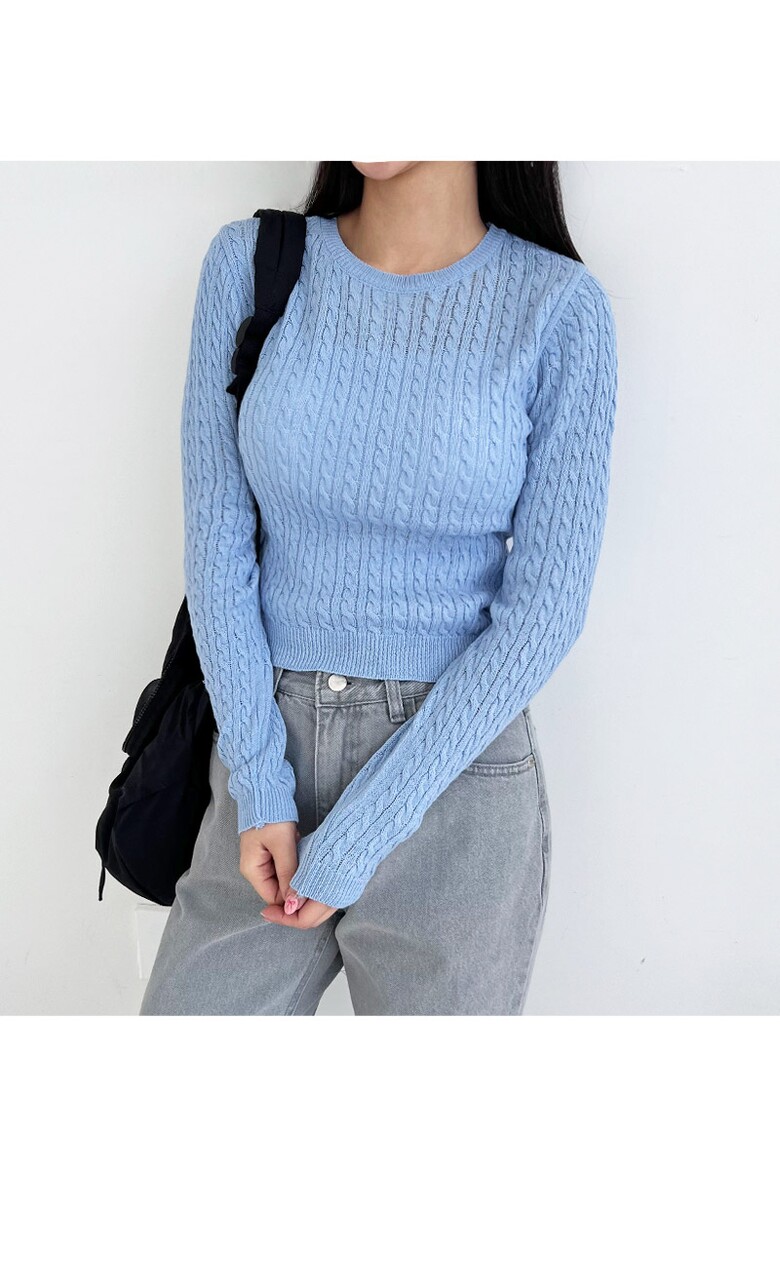 골피아 여자 벤티 꽈배기 세미 크롭 니트 여성 데일리 스웨터