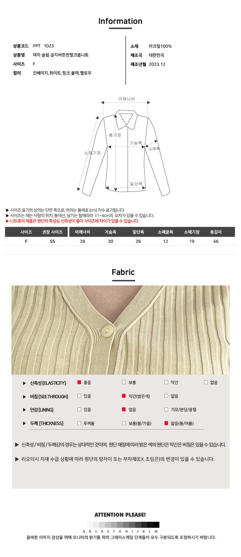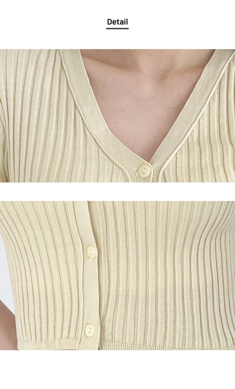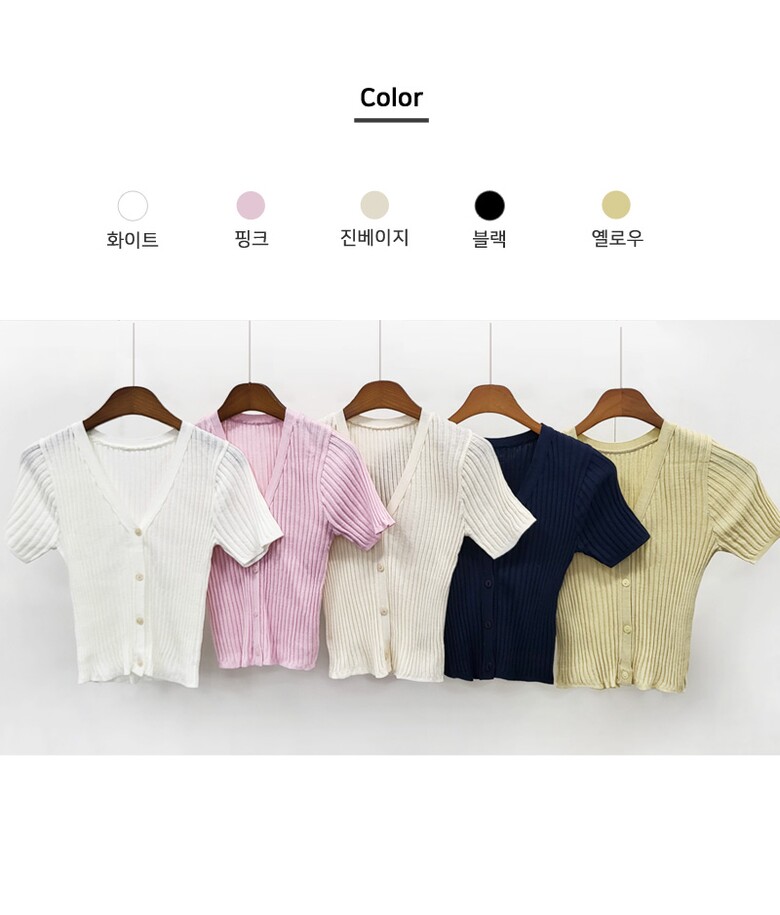 골피아 여자 슬림 골지 버튼 반팔 크롭 니트 여성 데일리 스웨터