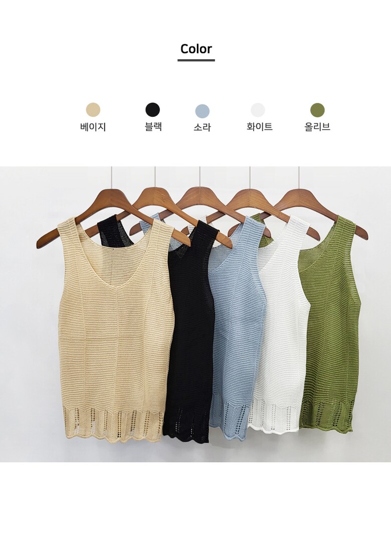 골피아 여자 썸머 프릴 브이 니트 나시 여성 데일리 스웨터