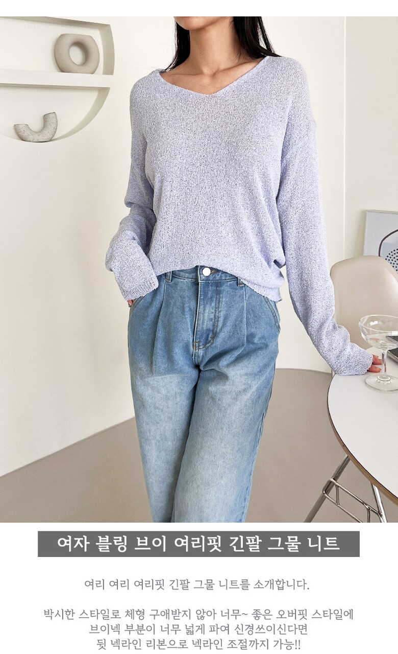 골피아 여자 블링브이 여리핏 긴팔 그물 니트 여성 데일리 스웨터