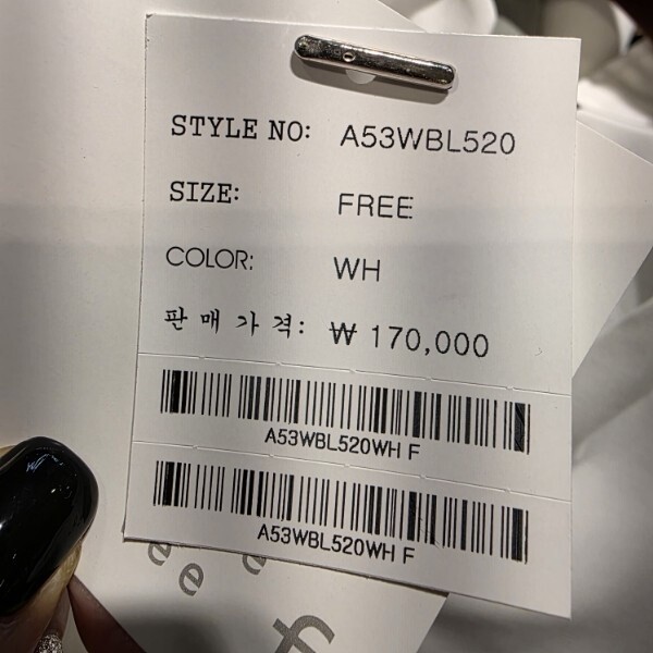 치수 : FREE 가슴단면 55, 소매길이 52, 총장 72