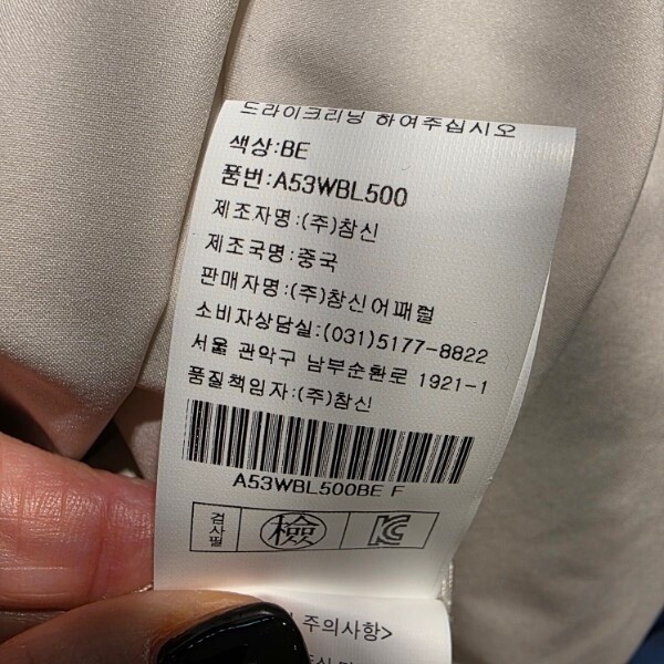 세탁방법 및 취급시 주의사항 : 드라이크리닝