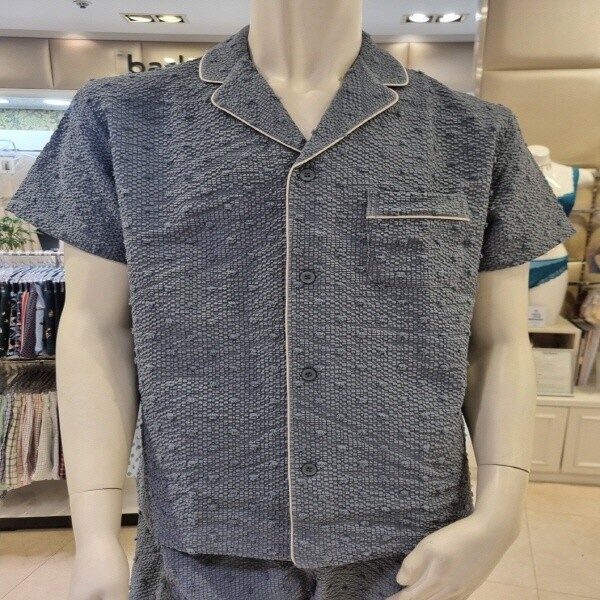 바바라 남성 반팔상의 7부바지 세트잠옷특이한 텍스처의 플로킹원단사용?시원한 소재감잠옷겸용 데일리 홈웨어활용
